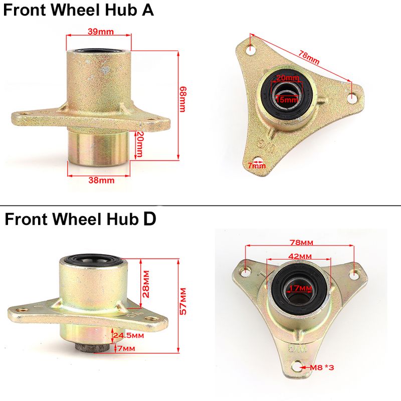 -- Applicable These flanges are specifically designed for Quad Bike ATVs and karts equipped with 5-inch or 6-inch tires, making them versatile for a variety of applications. The ability to install the bearing flange steering knuckle on both the left and right front wheels simplifies compatibility across different models, ensuring you have a option for performance upgrades.
