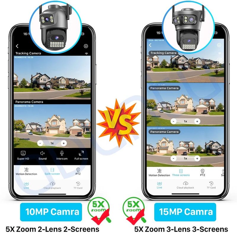 ①15MP 8K Three Lens Three Screens Wifi Camera