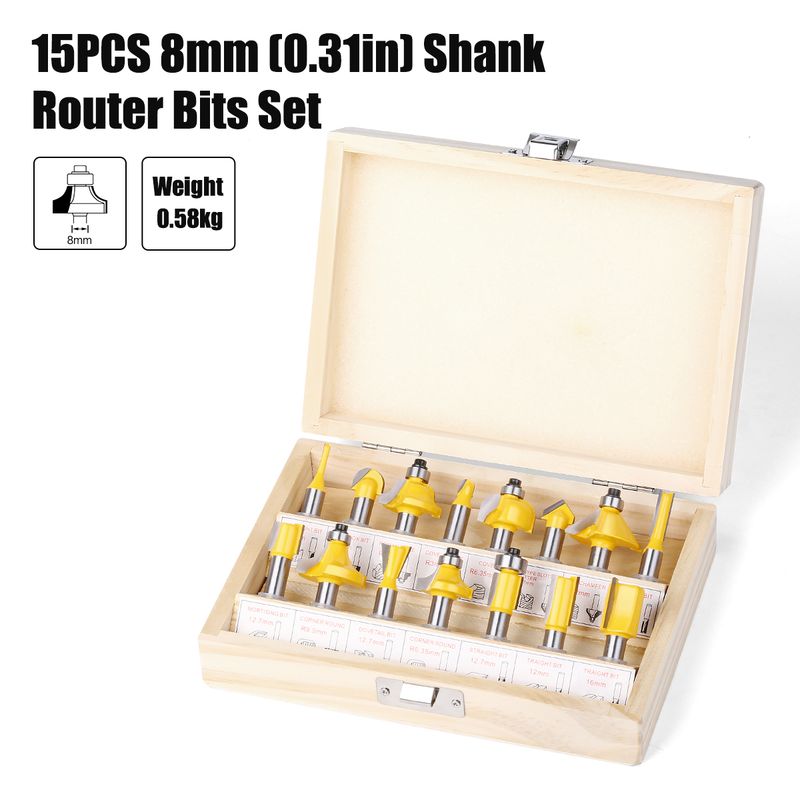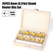15PCS 1/4in 1/2in 6mm 8mm Shank Router Bit Set Trimming Straight Beading Milling Cutter Carbide Cutting Woodworking Tools