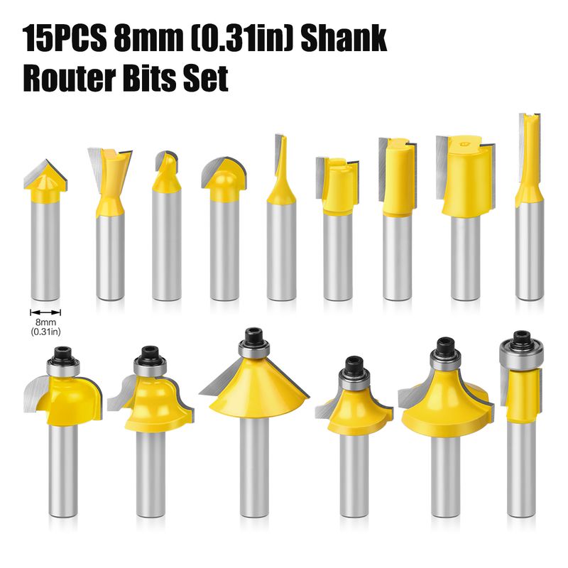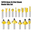 15PCS 1/4in 1/2in 6mm 8mm Shank Router Bit Set Trimming Straight Beading Milling Cutter Carbide Cutting Woodworking Tools