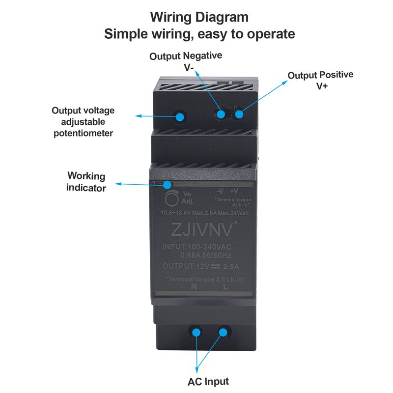 Provide multiple DC output voltages (such as 5V, 12V, 24V, 48V, etc.), with power coverage ranging from 15W to 150W, to meet the needs of different devices.