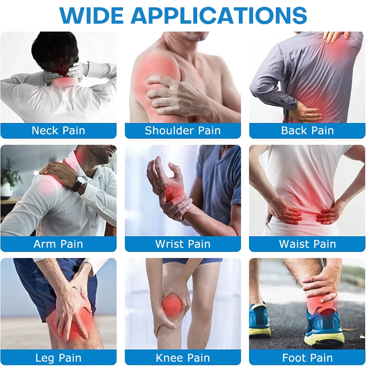 5. Relieve pain for the back, knees, shoulder, ankles, wrists, elbows, etc.