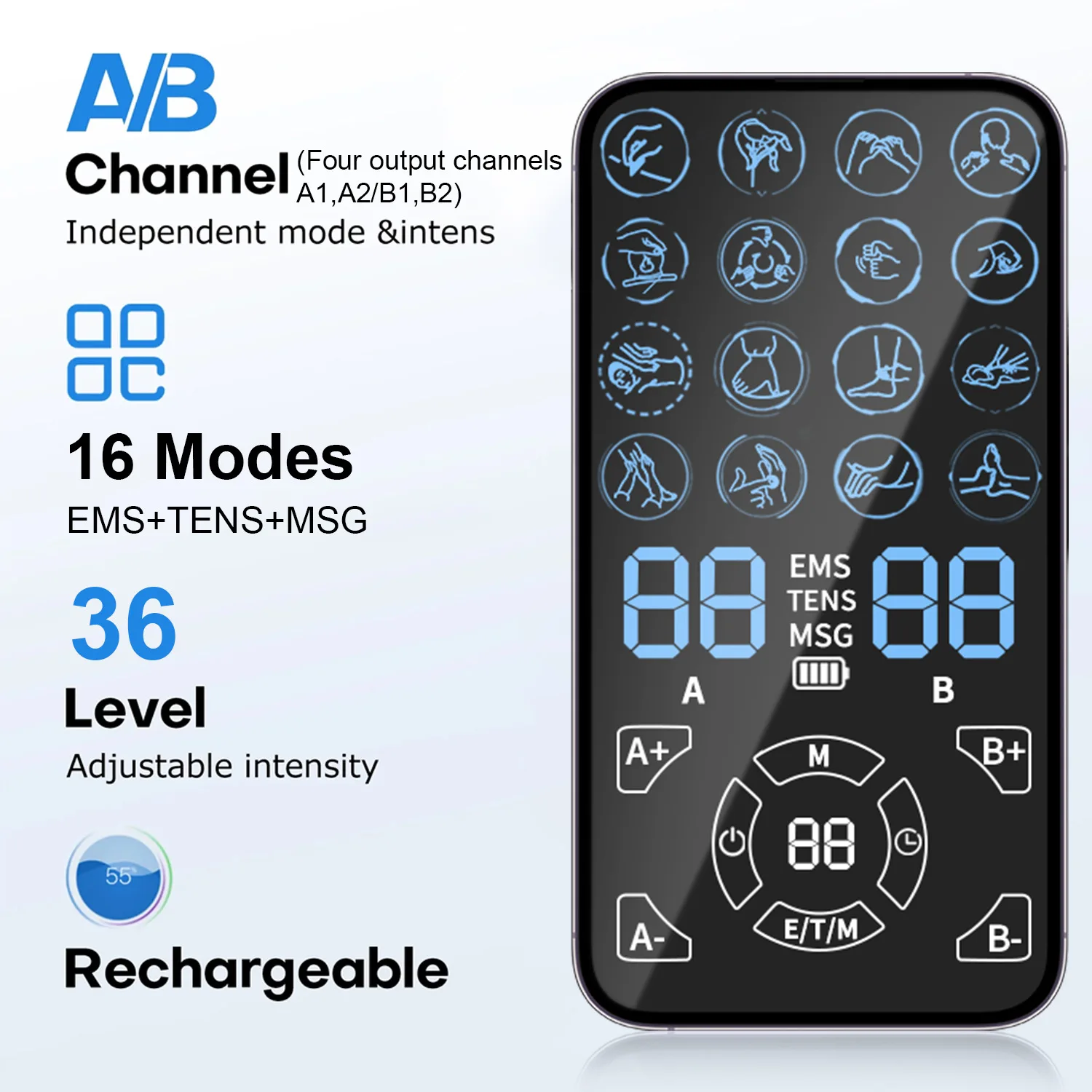 7. Mode and intensity of two-channel can be controlled