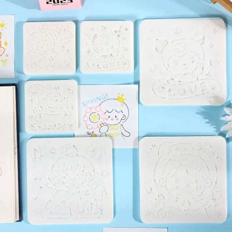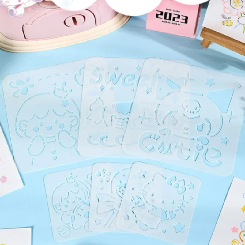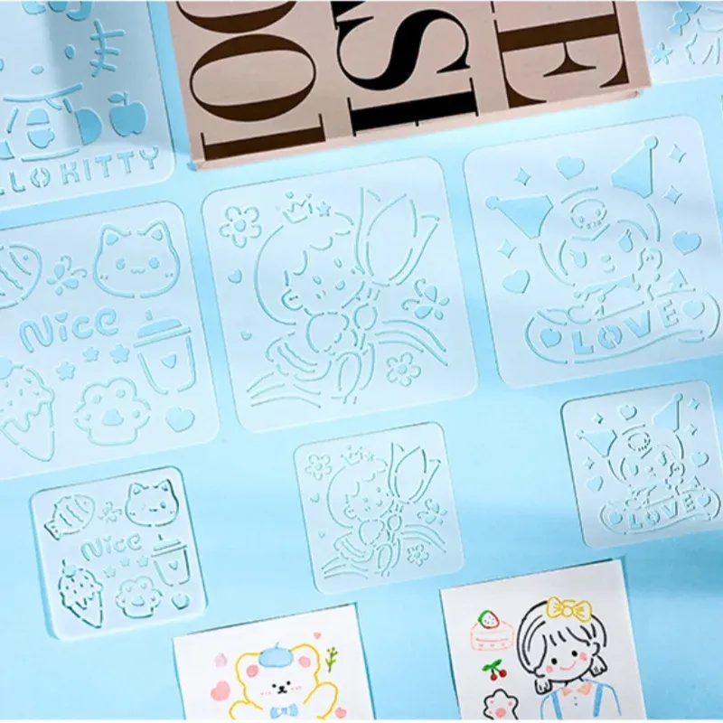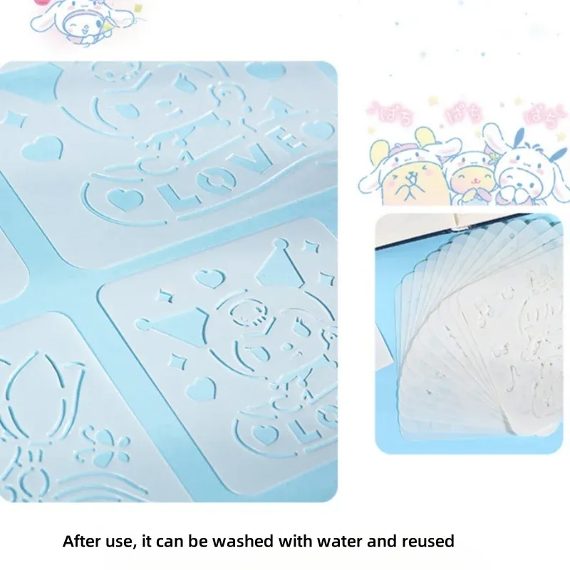 16-Pack Sanrio Characters Drawing Stencils Cartoon Kuromi Hello Kitty Cinnamoroll My melody Painting Molds Kids Gift