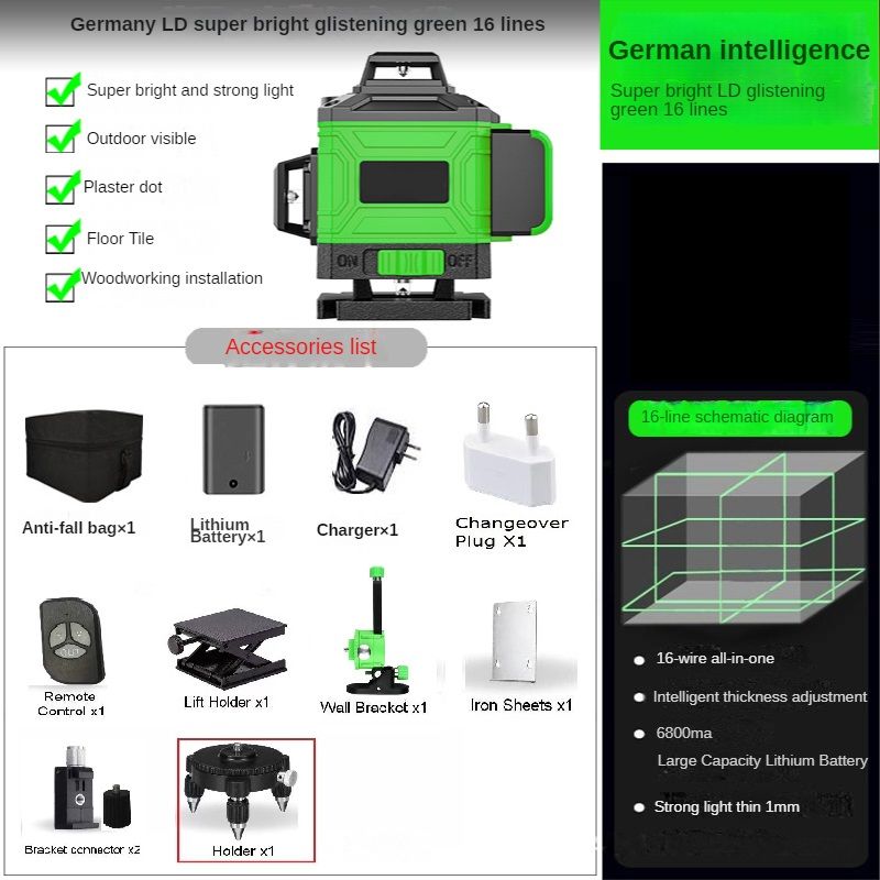 16/12 Lines 4D Laser Level green line SelfLeveling 360 Horizontal And Vertical Super Powerful Laser level green Beam laser level