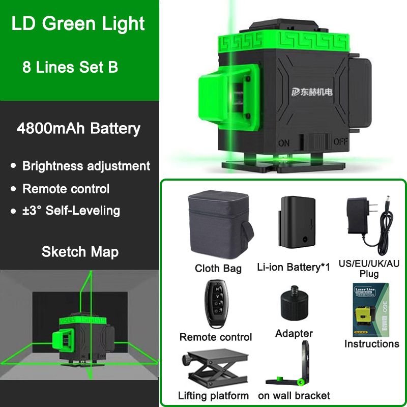 16/12/8 Lines 3D/4D Laser Level 3° Self-Leveling Green Light 360 Horizontal Vertical Cross Lines Beam Powerful Laser Level