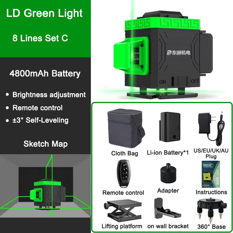 16/12/8 Lines 3D/4D Laser Level 3° Self-Leveling Green Light 360 Horizontal Vertical Cross Lines Beam Powerful Laser Level