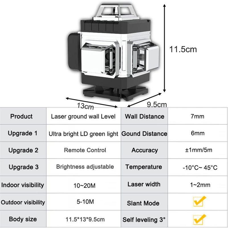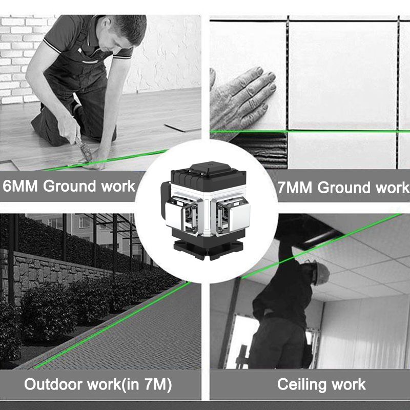 16/12/8 Lines 3D/4D Laser Level Green Light Beam Remote Control 3° Self-Leveling 360 Horizontal Vertical Cross Lines Laser Level