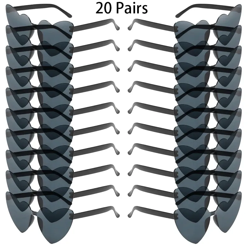 16/20 Pcs Rimless Heart Sunglasses Fashion Solid Color Cute Outdoor Vacation Decor Shades Women Trendy Rave Casual Sun Glasses