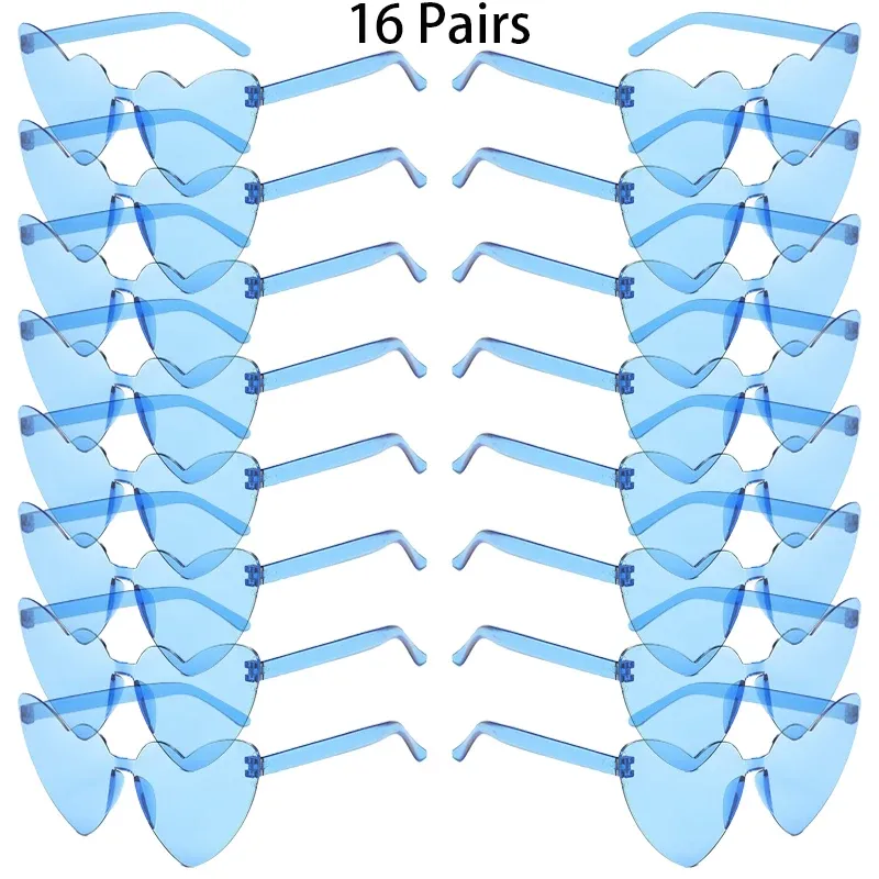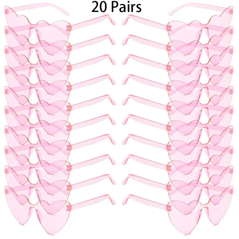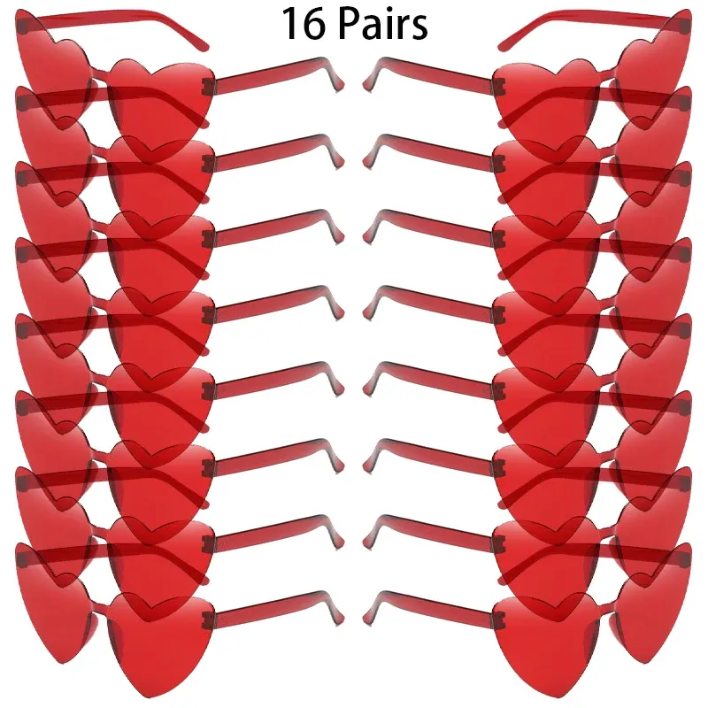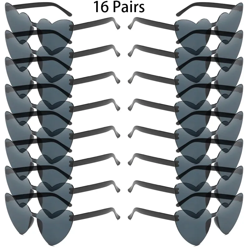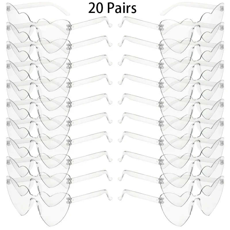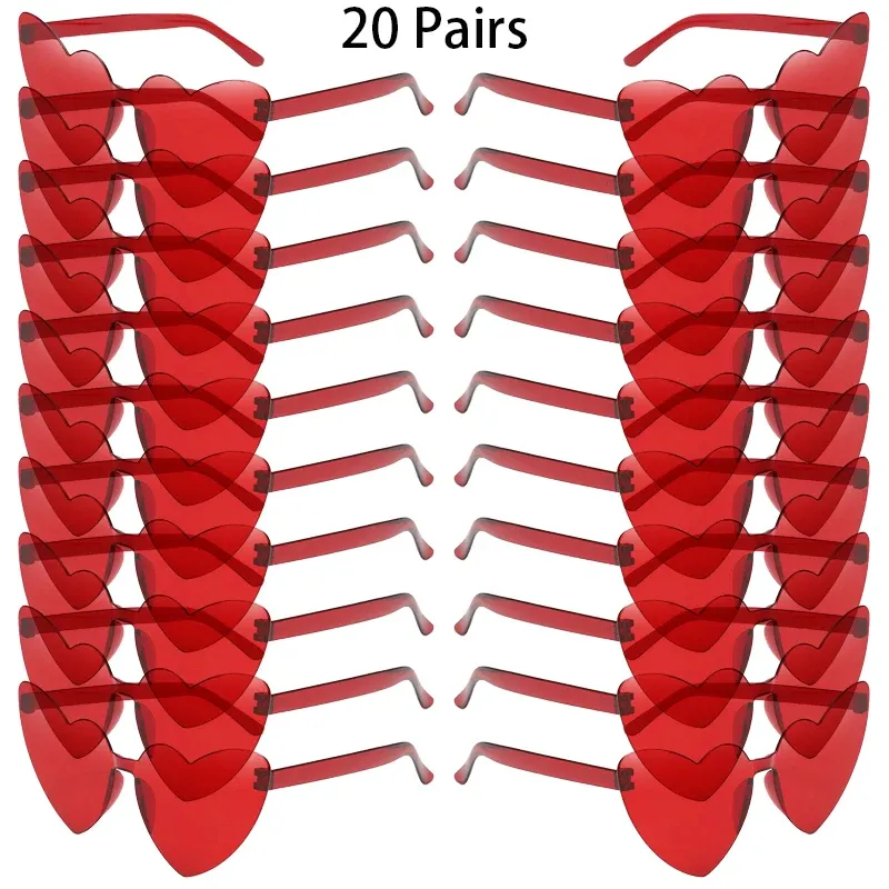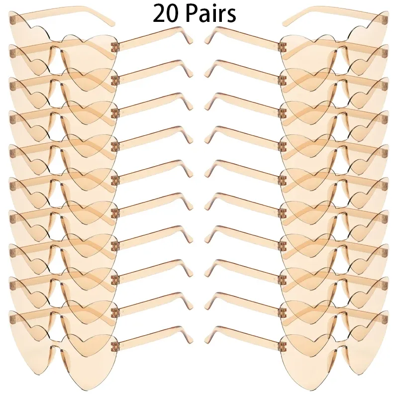 16/20 Pcs Rimless Heart Sunglasses Fashion Solid Color Cute Outdoor Vacation Decor Shades Women Trendy Rave Casual Sun Glasses