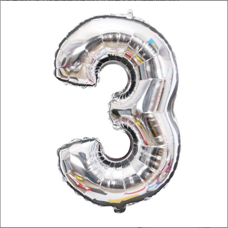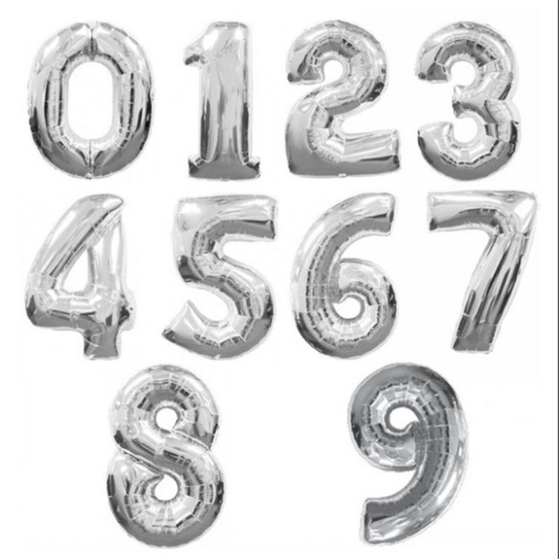 16/32/ 40 Inch Large Birthday Foil Balloon Helium Digital Decoration Party Silver Children