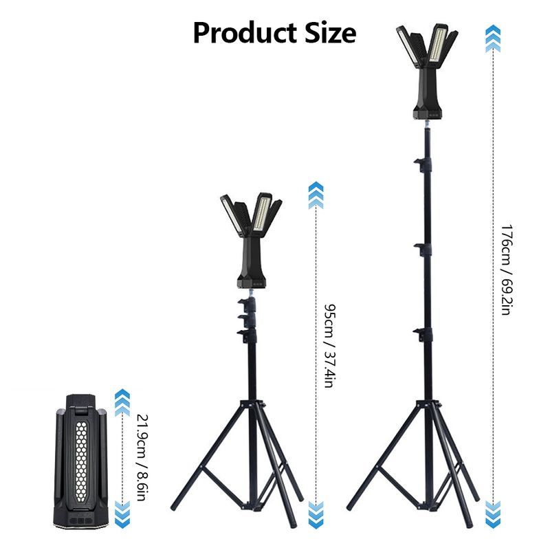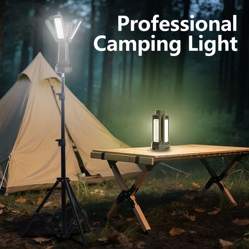 Adjustable Four Head- Designed as a multifunctional rechargeable work light with four adjustable LED heads that can rotate vertically 180 ° and horizontally 270 °, providing a wide range of lighting. Whether it's camping, work sites, or emergency lighting, the work lights on this bracket ensure wide and reliable coverage for various tasks.
