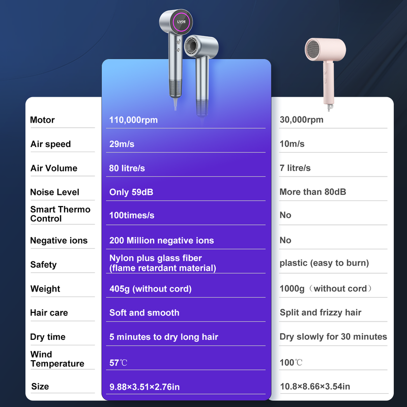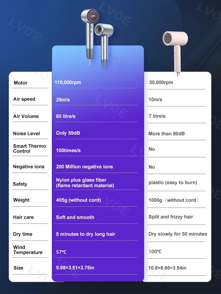 110000rpm ultra-high speed brushless motor for fast dry hair;
