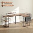 168cm Reversible L Shaped Desk, Industrial Corner Computer Desk With Adjustable Shelf And Storage Bag, 240cm 2 Person PC Table With Monitor Stand, Rustic Brown