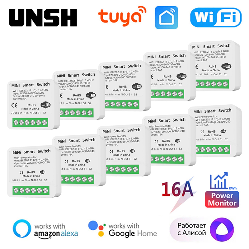 16A Tuya WiFi Smart Switch 2-way Control with Energy Monitor Switch Mini Smart Breaker Smart Life Control Alexa Via Google Home