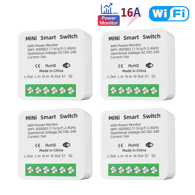 16A Tuya WiFi Smart Switch 2-way Control with Energy Monitor Switch Mini Smart Breaker Smart Life Control Alexa Via Google Home