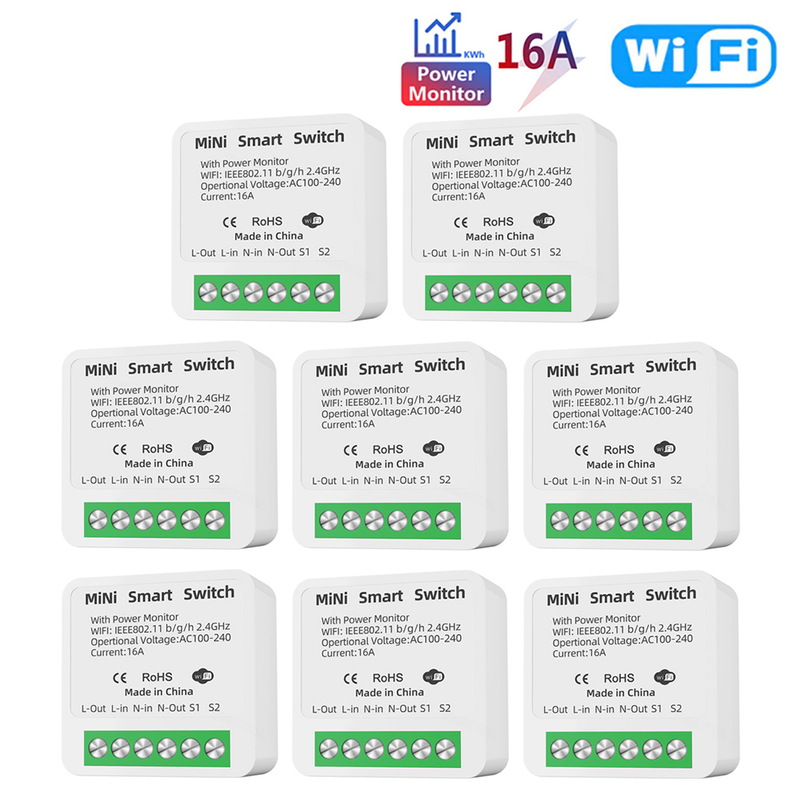 16A Tuya WiFi Smart Switch 2-way Control with Energy Monitor Switch Mini Smart Breaker Smart Life Control Alexa Via Google Home