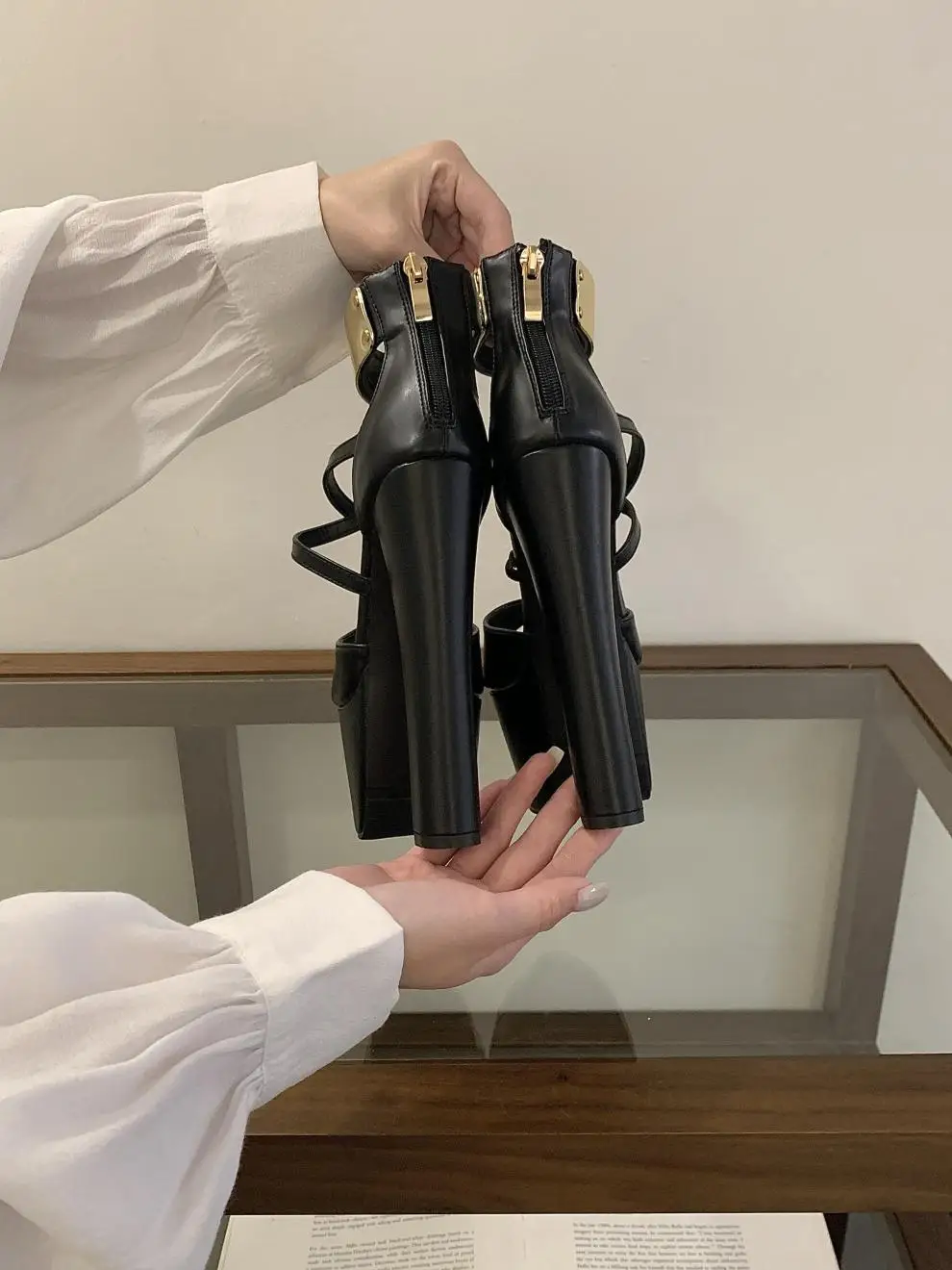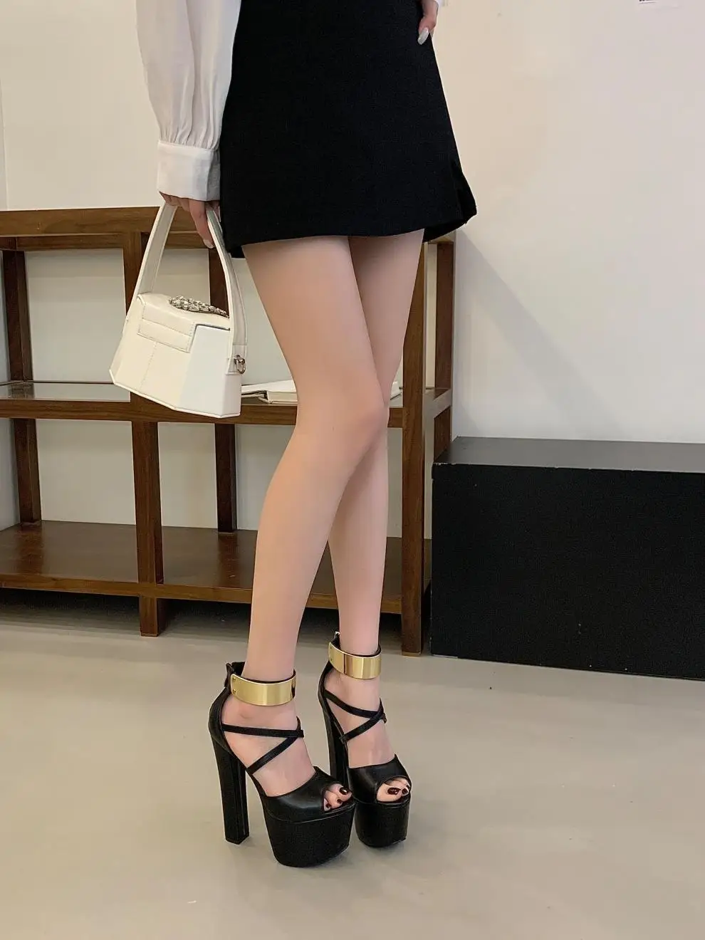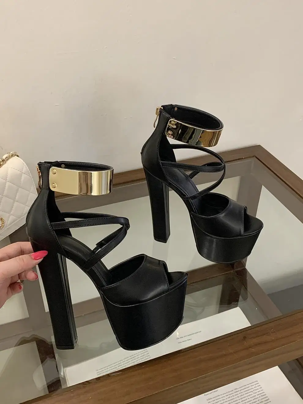 The golden platform adds a touch of elegance and sophistication, enhancing the overall aesthetic of the shoe.