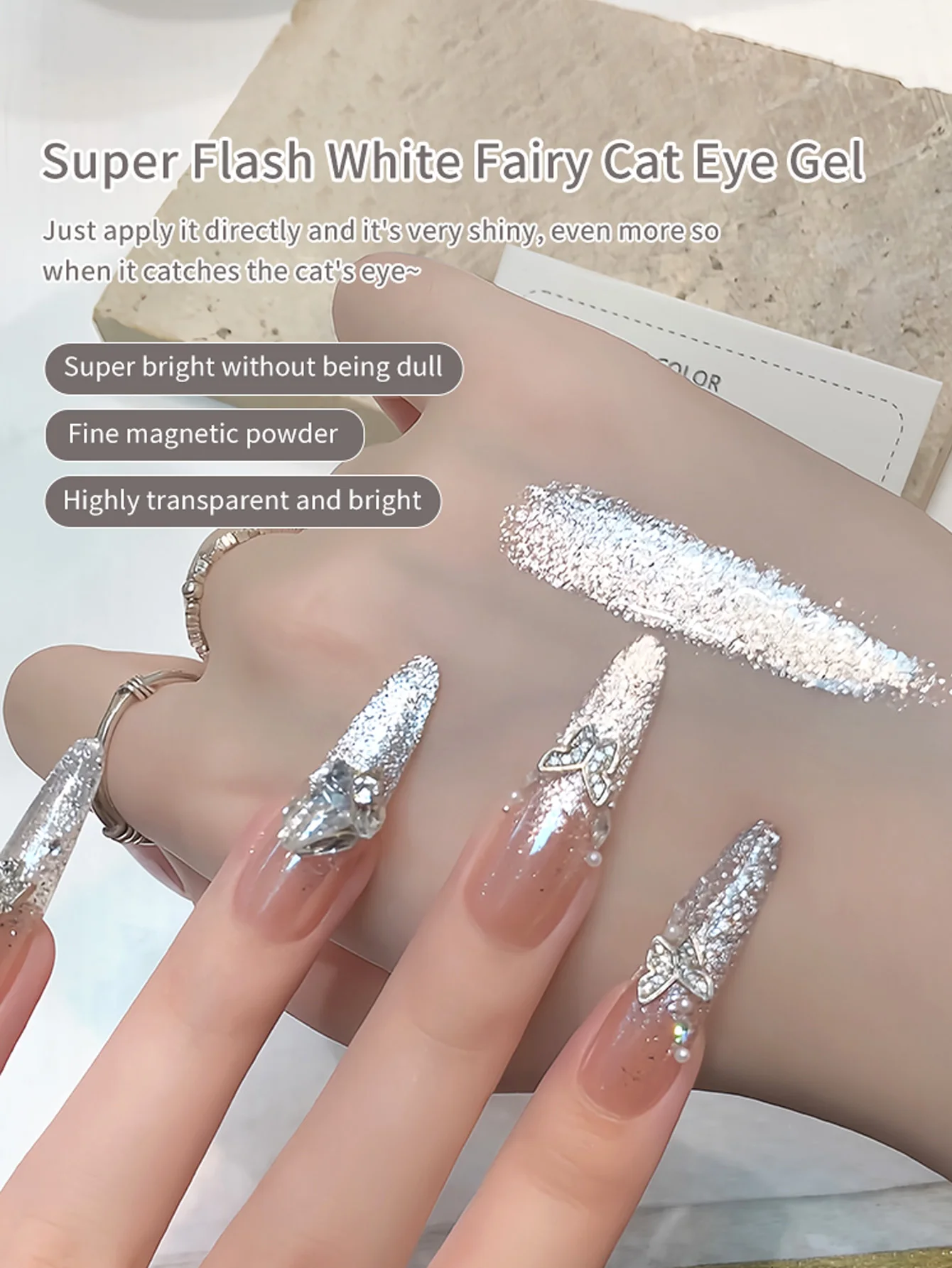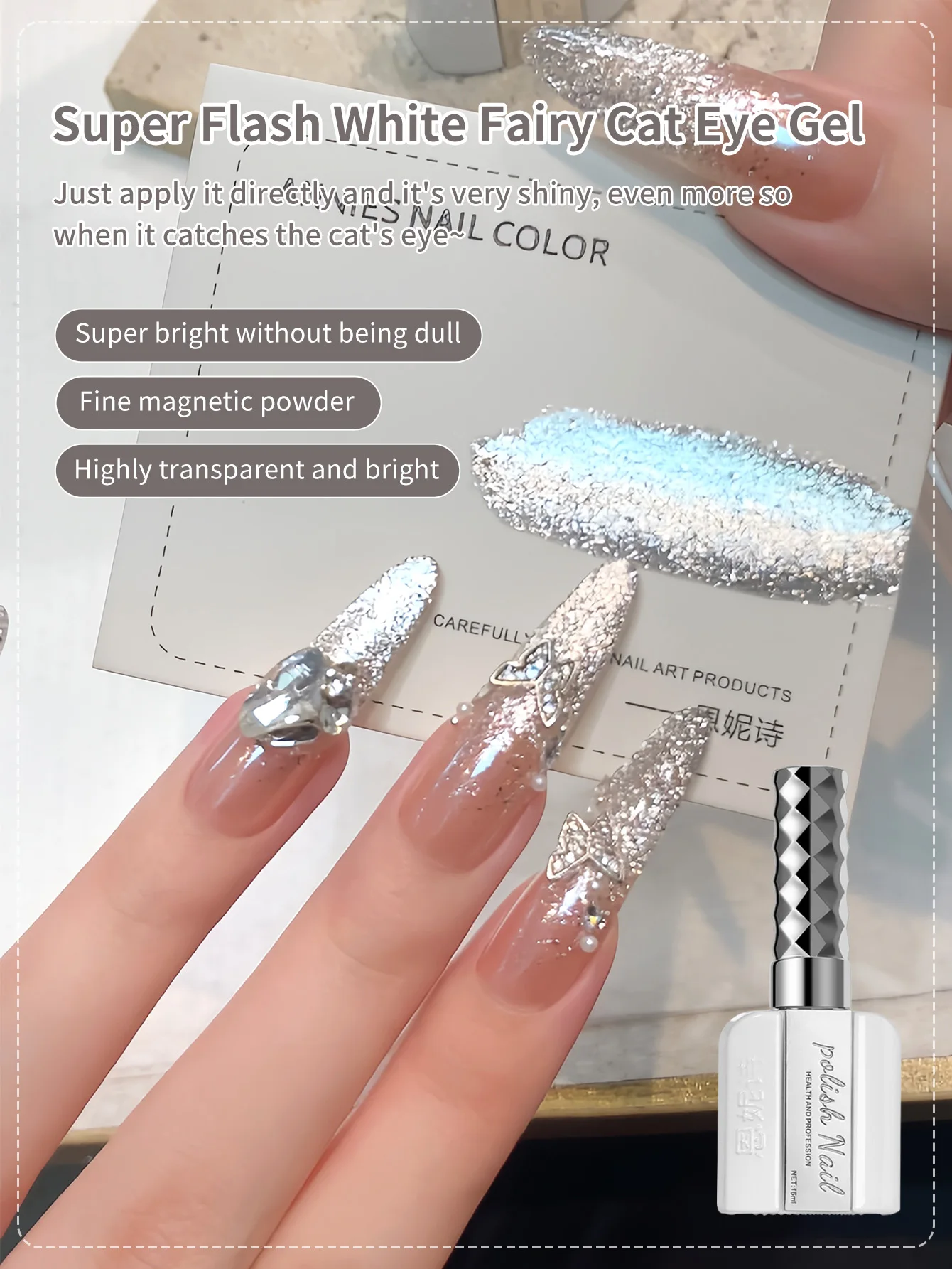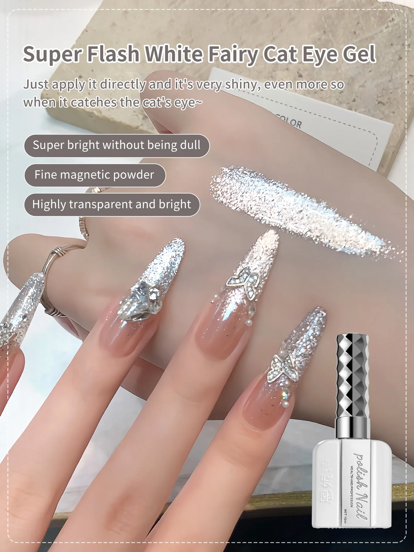 16ml Sparkling NO GRAY Cat Eye Gel Nail Polish Reflective Magnetic Gel White Color Soak Off UV Permanent Seedling Varnish Nail