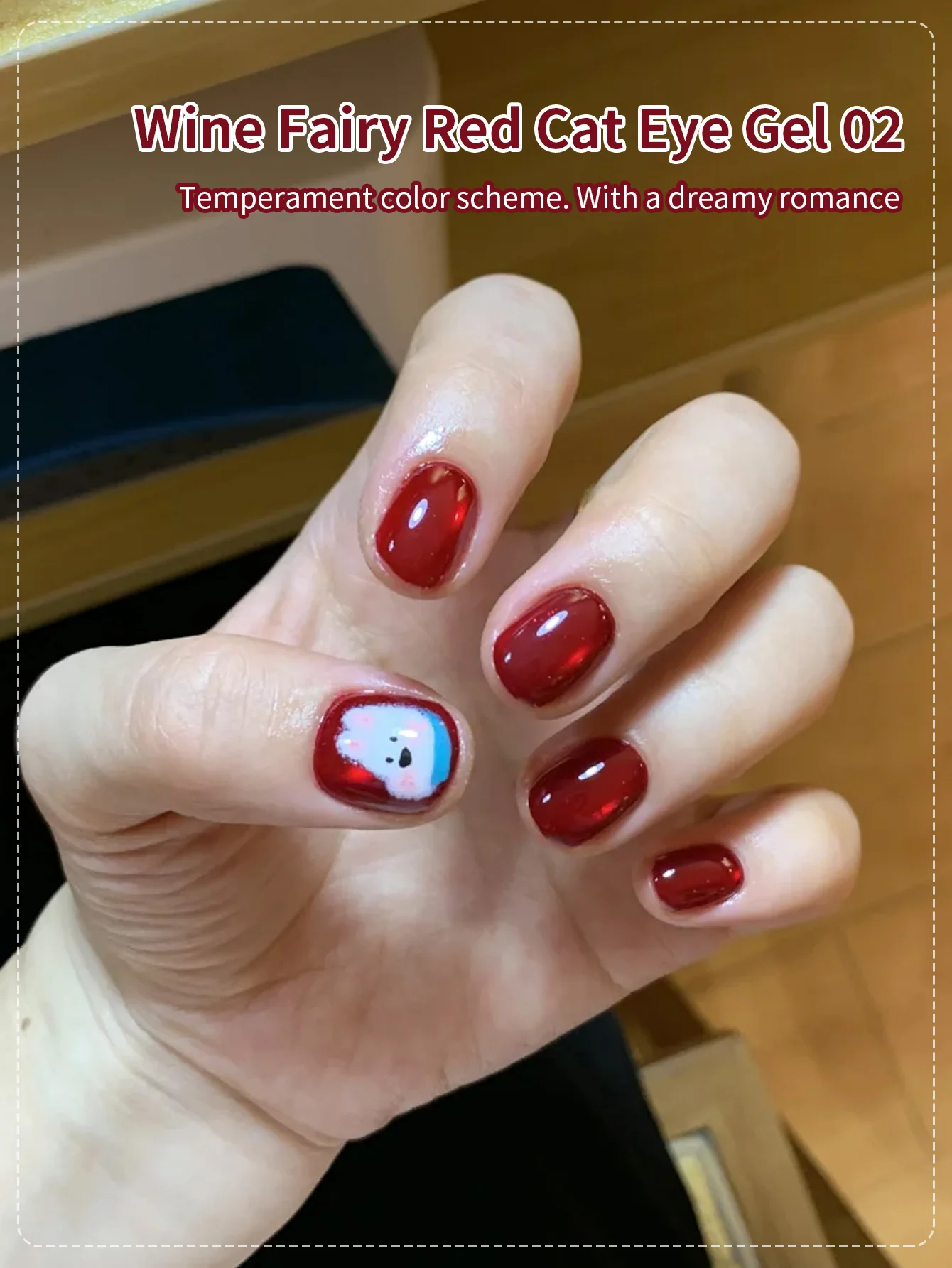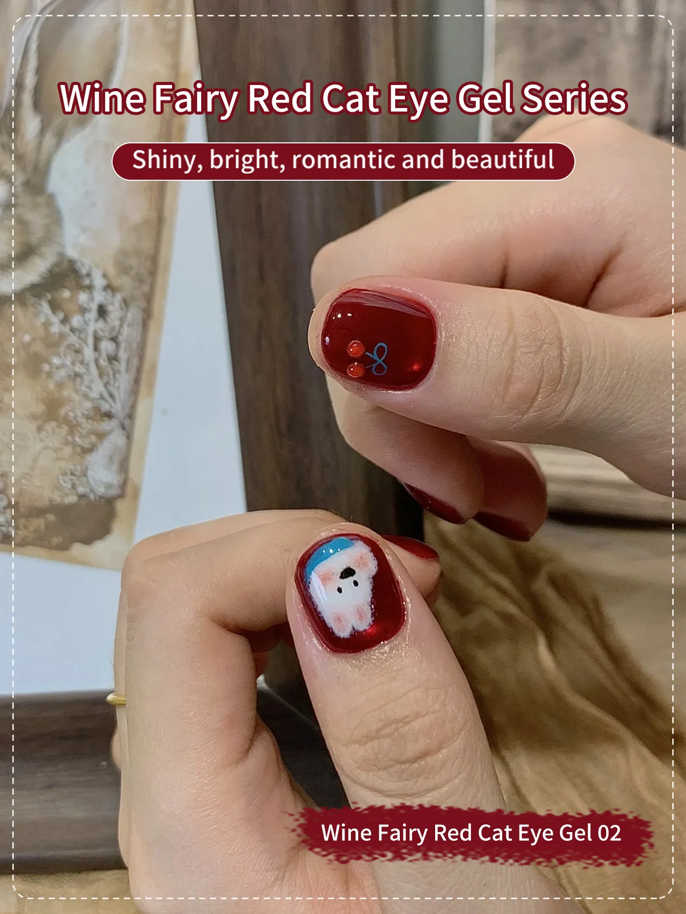 16ml Wine Red Cat's Eye Gel Nail Polish Soak off UV Lamp Semi Permanent Magnetic Varnish Red Christmas Nail Exclusive Salon Gel