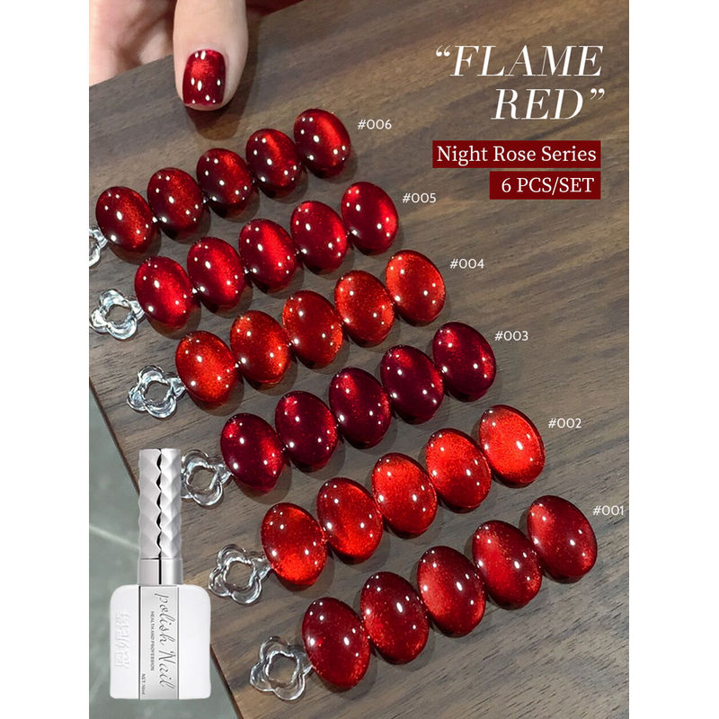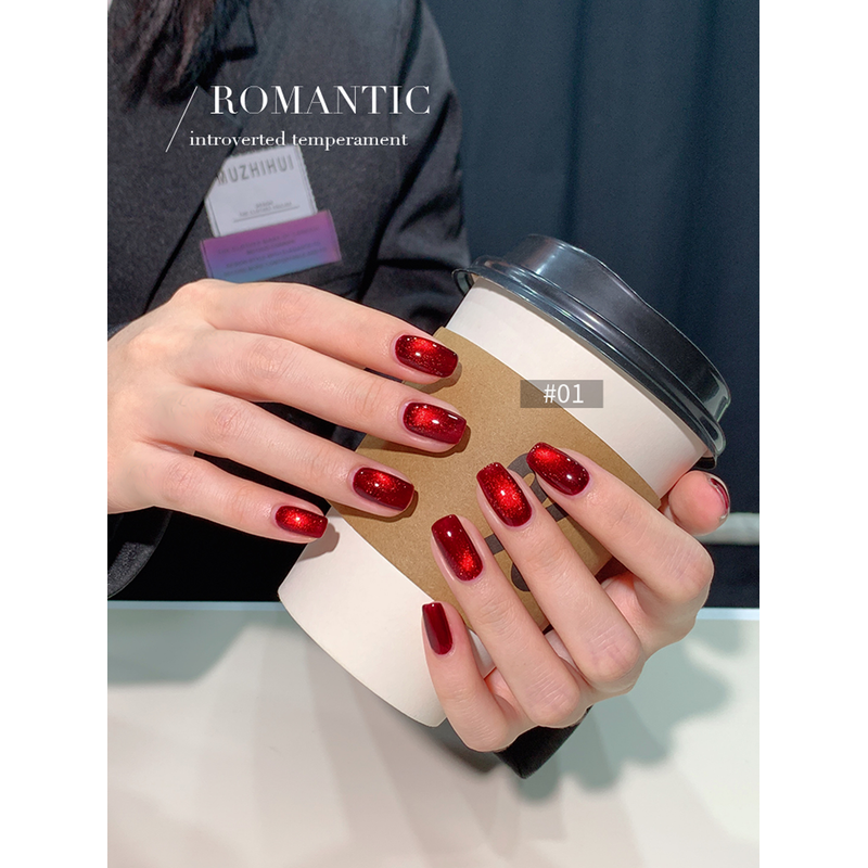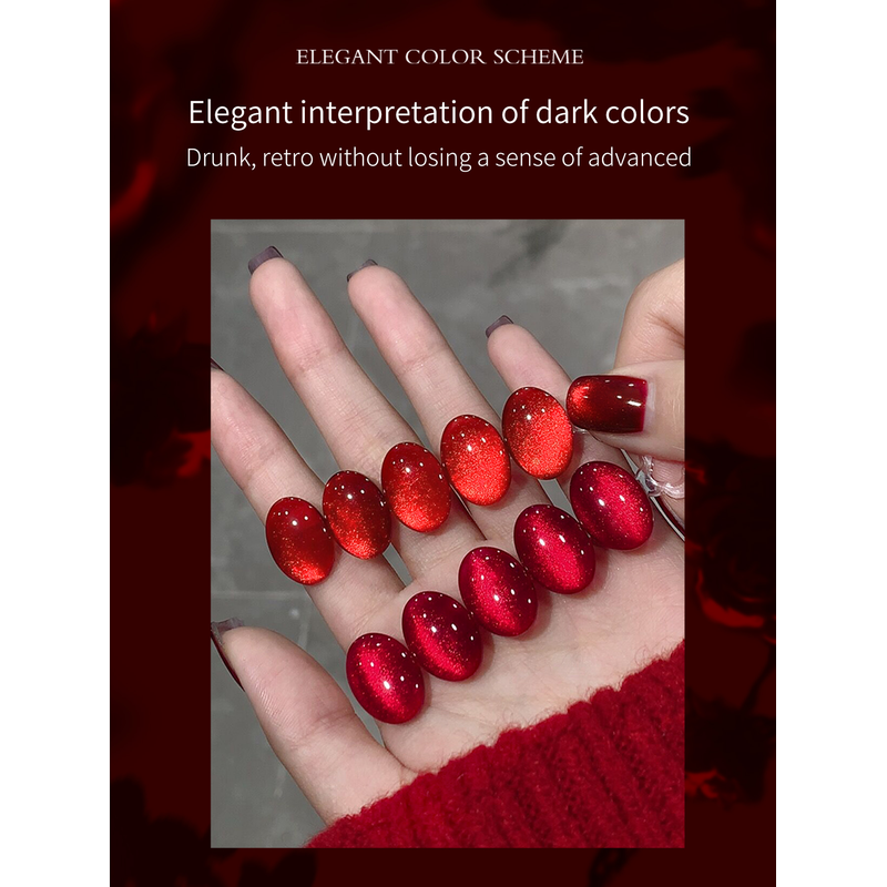 16ML Wine Red Rose Red Cat Magnetic Gel Nail Polish Set Shiny Ruby Red Cat Eye Gel Soak Off UV Semi-Permanent Nail Art Varnish