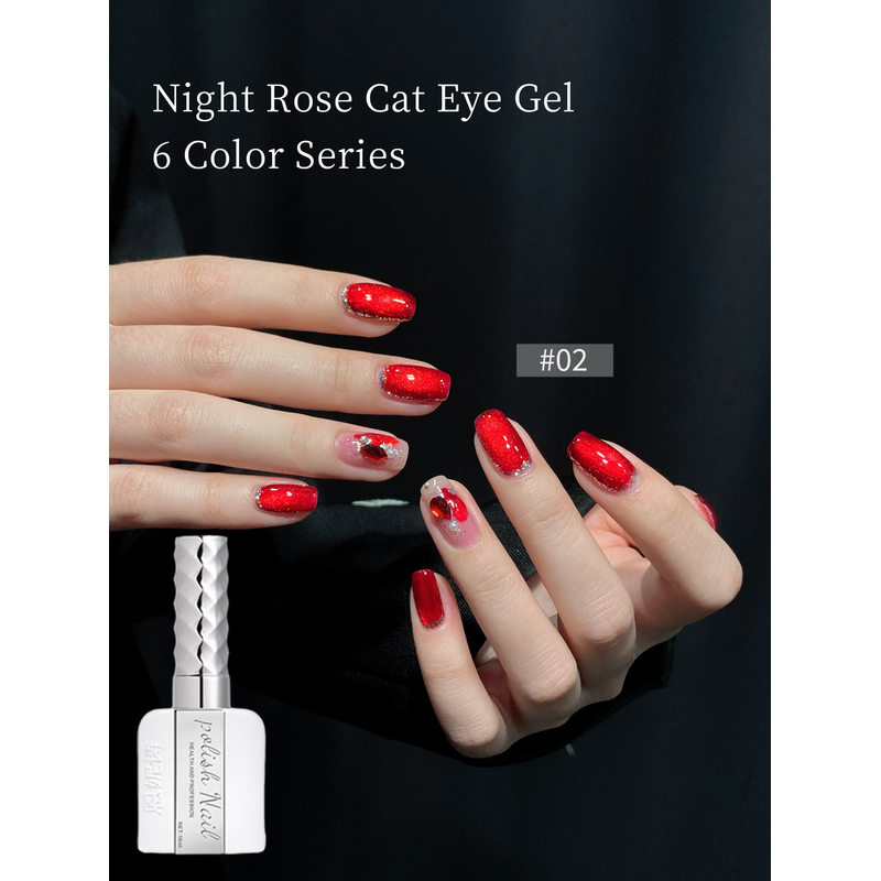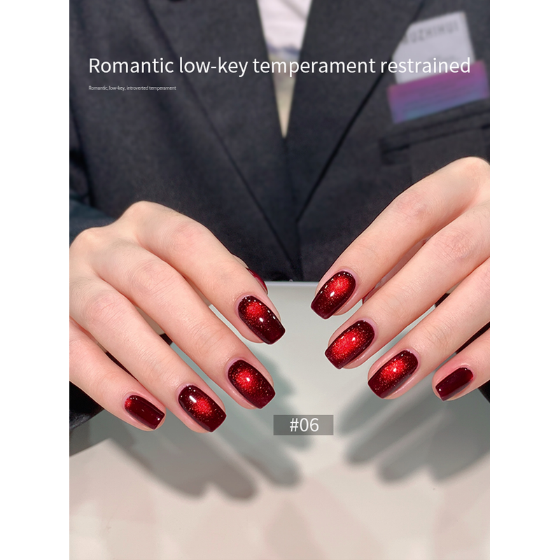 16ML Wine Red Rose Red Cat Magnetic Gel Nail Polish Set Shiny Ruby Red Cat Eye Gel Soak Off UV Semi-Permanent Nail Art Varnish