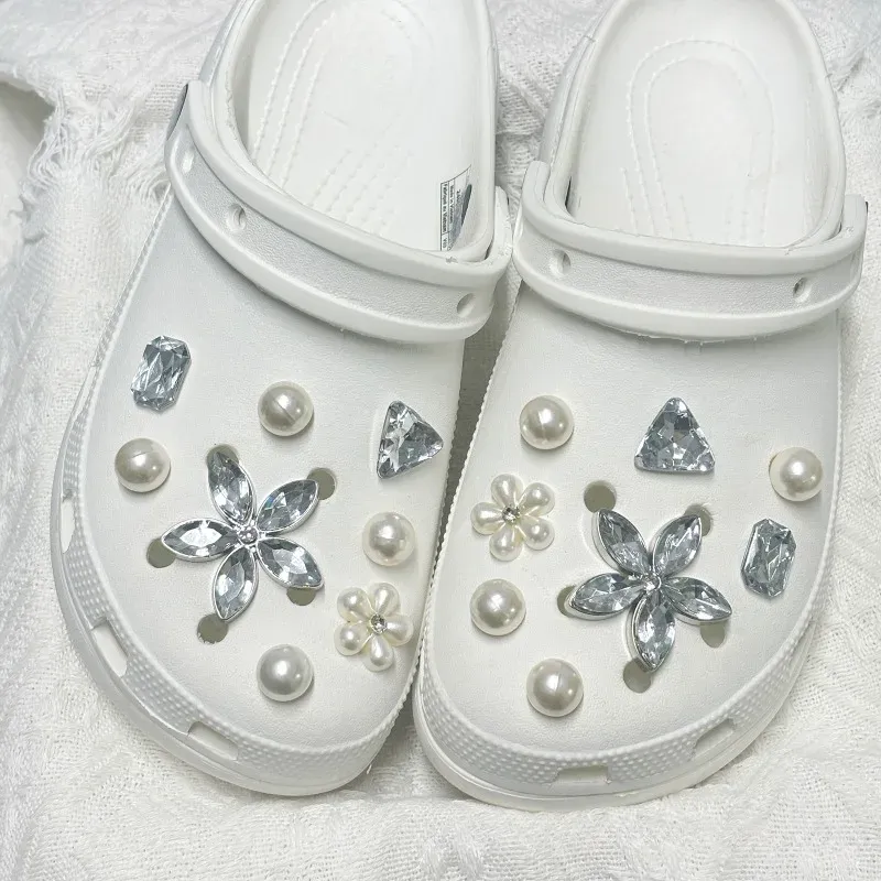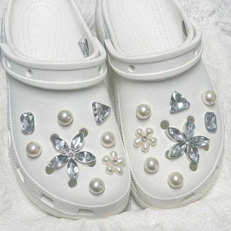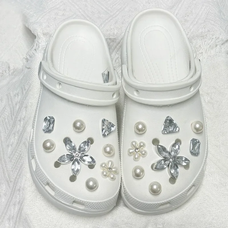 16PCS Floral Pearl Shoe Charms Set Elegant Women's Garden Shoe Decorations for Wedding Beach Party DIY Slipper Accessories