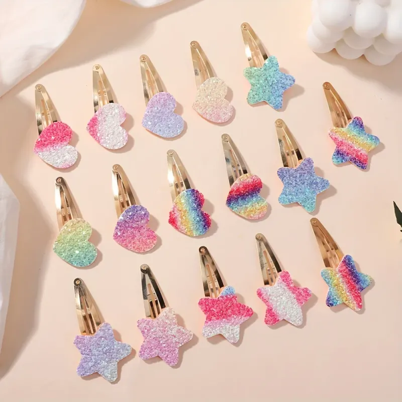 16Pcs Geometric Hair Clip Glitter DropletColorful Gradient Children Bangs BB Alloy Hairpins Girls Headclips Hair Accessories