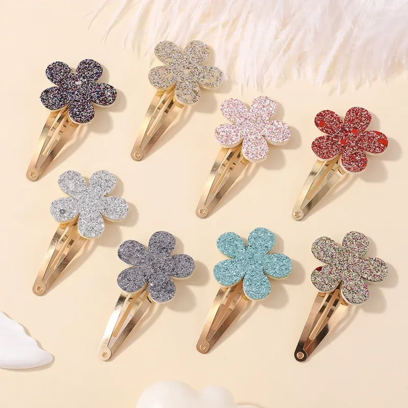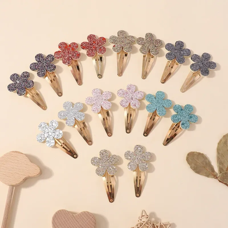16Pcs Shiny Flower Hairpins Glitter BB Hair Clips for Baby Girls Handmade Barrettes Headwear Fashion Kids Hair Accessories