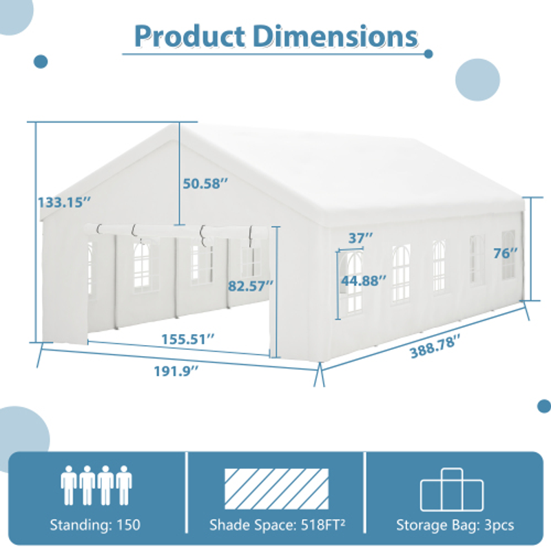 Product Name:16x32FT Party Tent Heavy Duty, Large Wedding Event Shelters with 3 Storage Bags & Removable Sidewalls, Outdoor Canopy Gazebo Commercial Tents for Parties Carport Camping Garden Patio