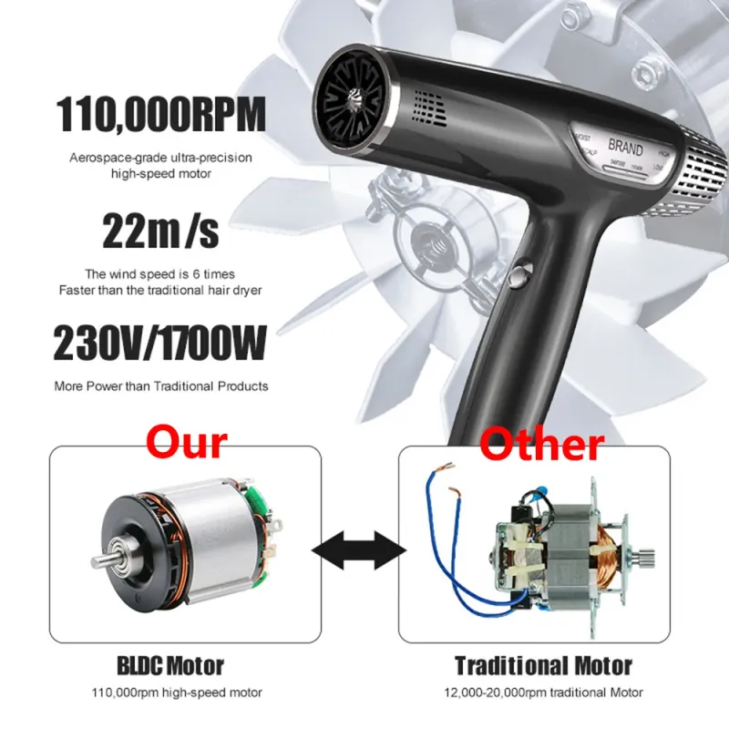 1700W Professional 110000rpm Brushless Hair Dryer Super Powerful High Speed Negative Ions Blow Dryer 220V Electric Blower