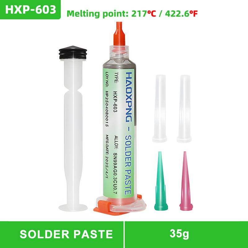 HXP-603:(Sn99Ag0.3Cu0.7) Ingredients: Tin (Sn) 87.1%,, Silver (Ag) 0.27%,copper(Cu)0.63% ,Flux (excluding metals) 12%