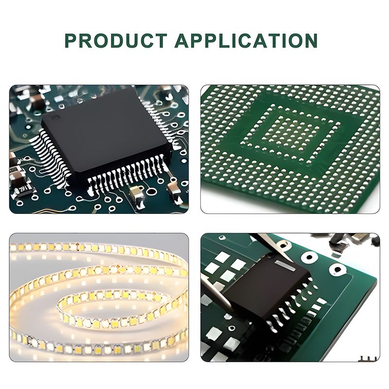 Melting point: 172 ℃ (medium temperature type), Suitable for SMT SMT SMT process Environmental standards: Compliant with RoHS lead-free requirements Applicable fields: Mobile phone and computer maintenance, LED packaging, circuit boards, BGA patches, etc. Flux: Contains rosin resin and organic acid activator, with minimal residue and moisture resistance