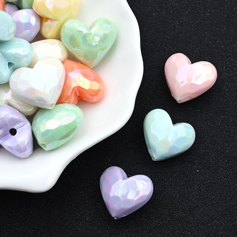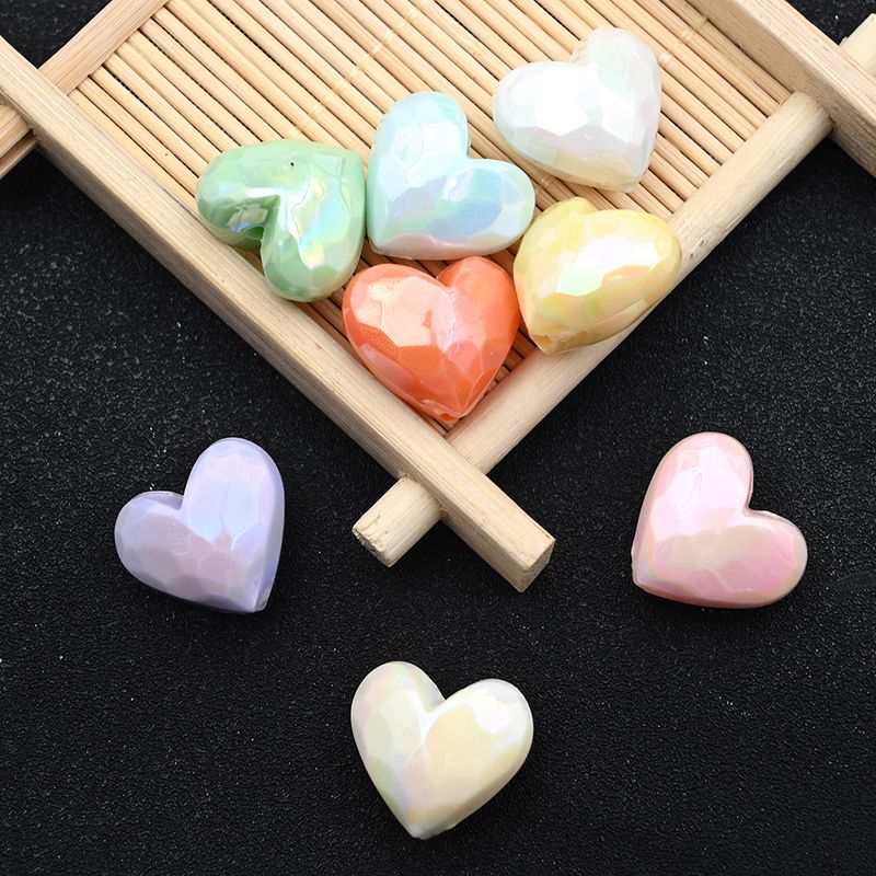 17x19mm UV Colorful Faceted Heart Acrylic Beads Loose Spacer Beads For Jewelry Making Diy Keychains Bracelet Necklace Accessory