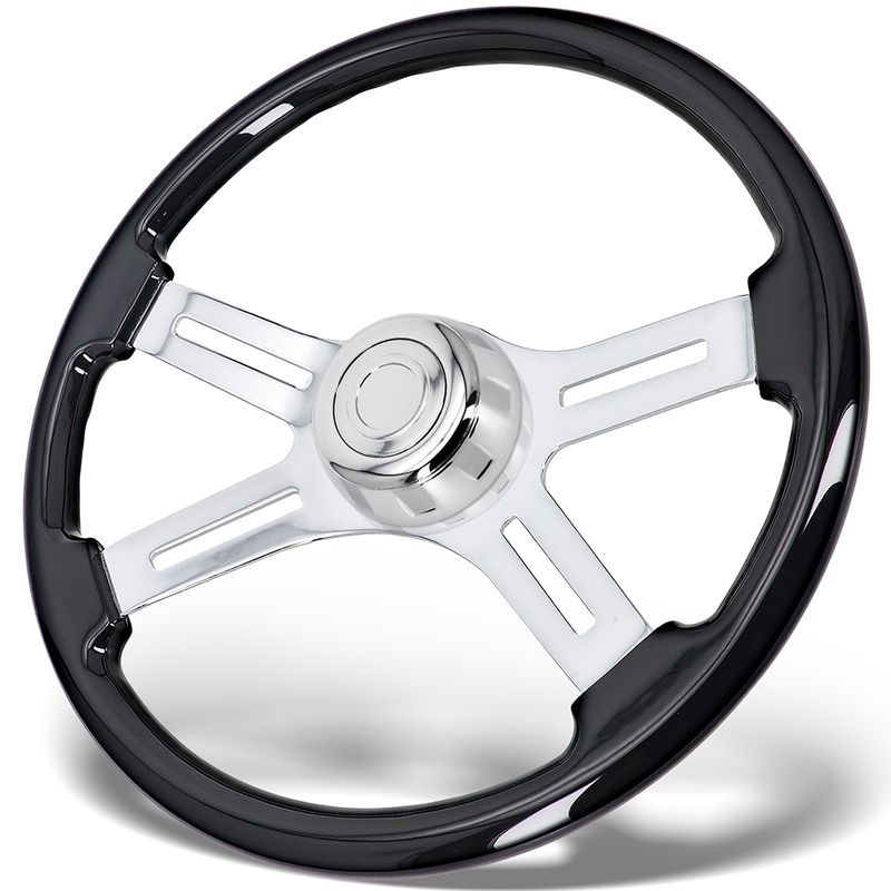 18-inch For Semi-Trailer Mack Kenworth Peterbilt Volvo Trucks Aluminum Chrome Classic with Horn Button Solid Wood Steering Wheel