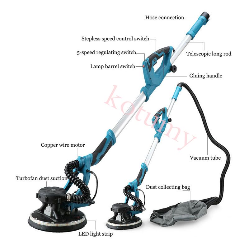 1800W Portable Drywall Sander No Dust Electric Wall Sander Adjust Speed Wall Putty Polishing Grinding Machine