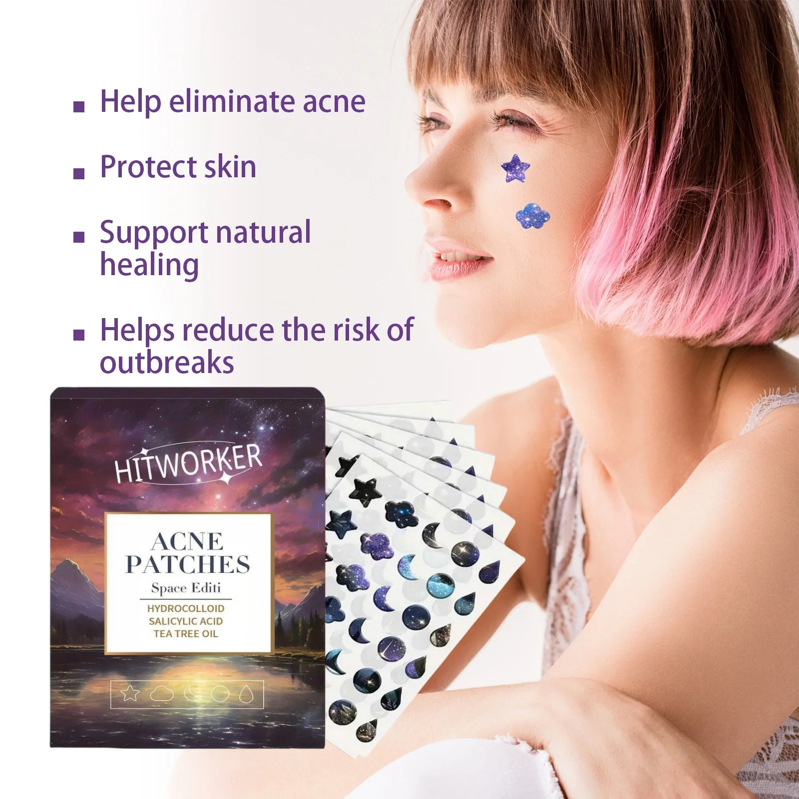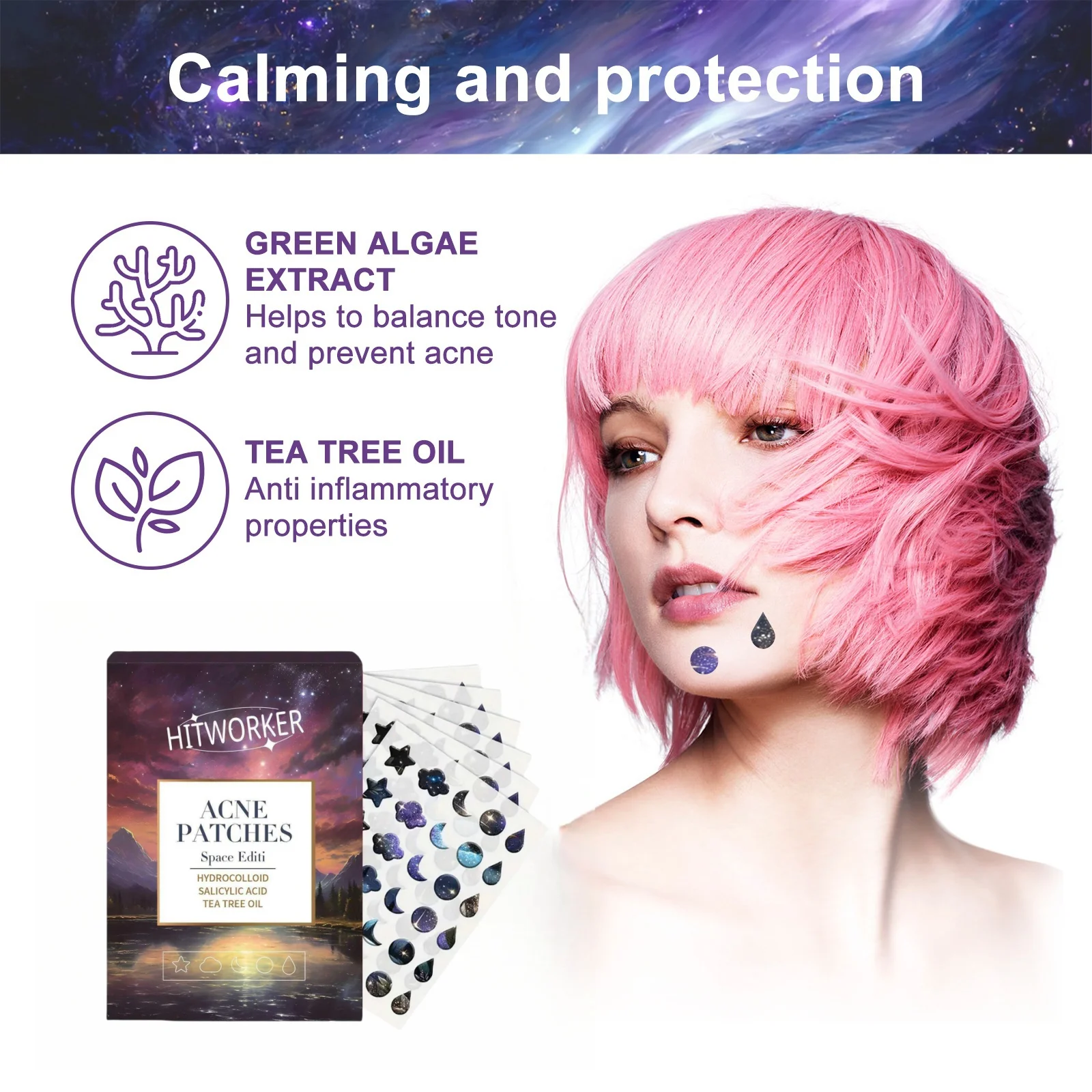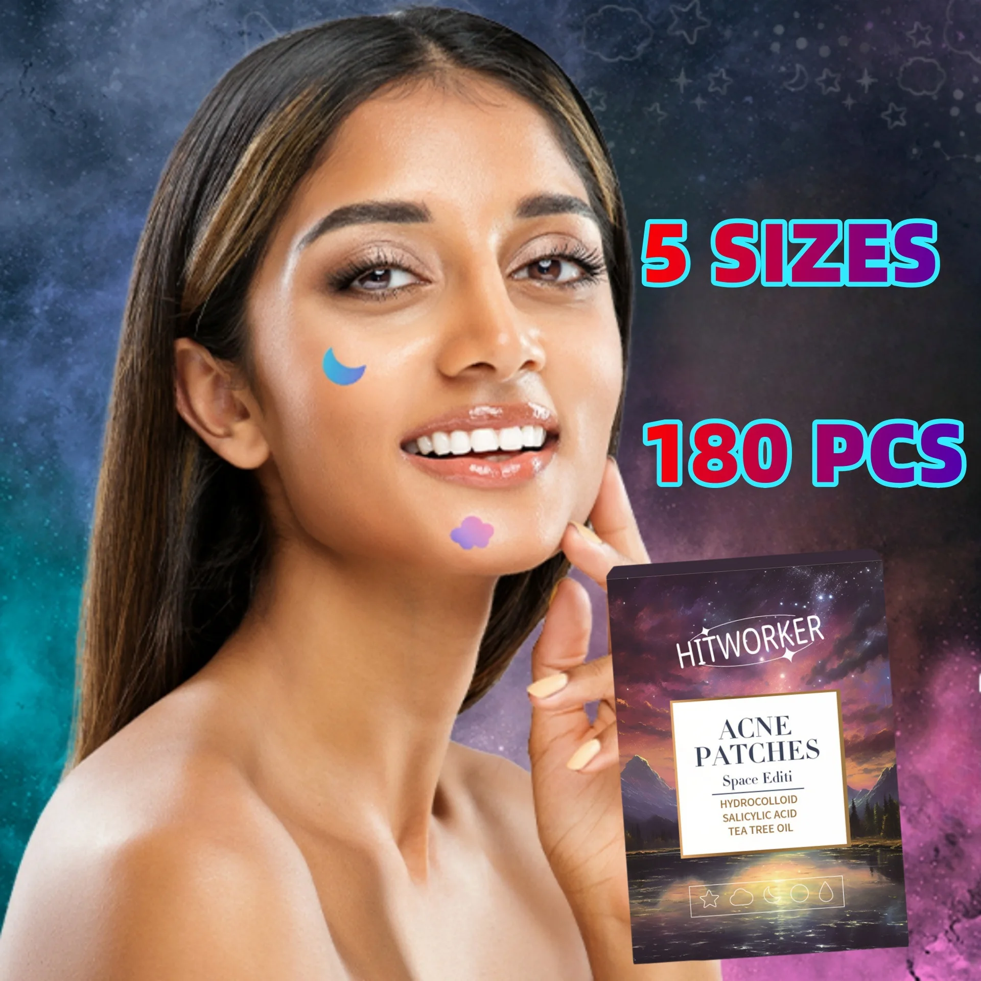 180pcs/box of water-based tea tree oil acne patches, space version designed acne stickers, facial skincare products, Halloween