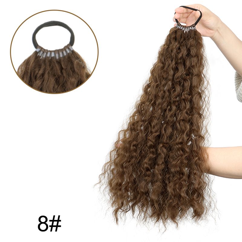 18Inch Synthetic Long Curly Daily Use Women's Ponytail Deep Curly Hair Extension With Elastic Rubber Band Fluffy Hairpiece