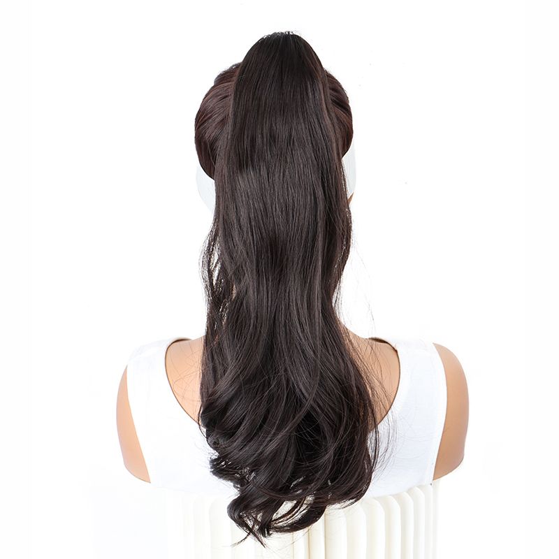 18Inch Synthetic Long Wavy Curly Ponytail Claw Clip in Hair Extension Black Brown Hairpiece Easy to Wear for Women
