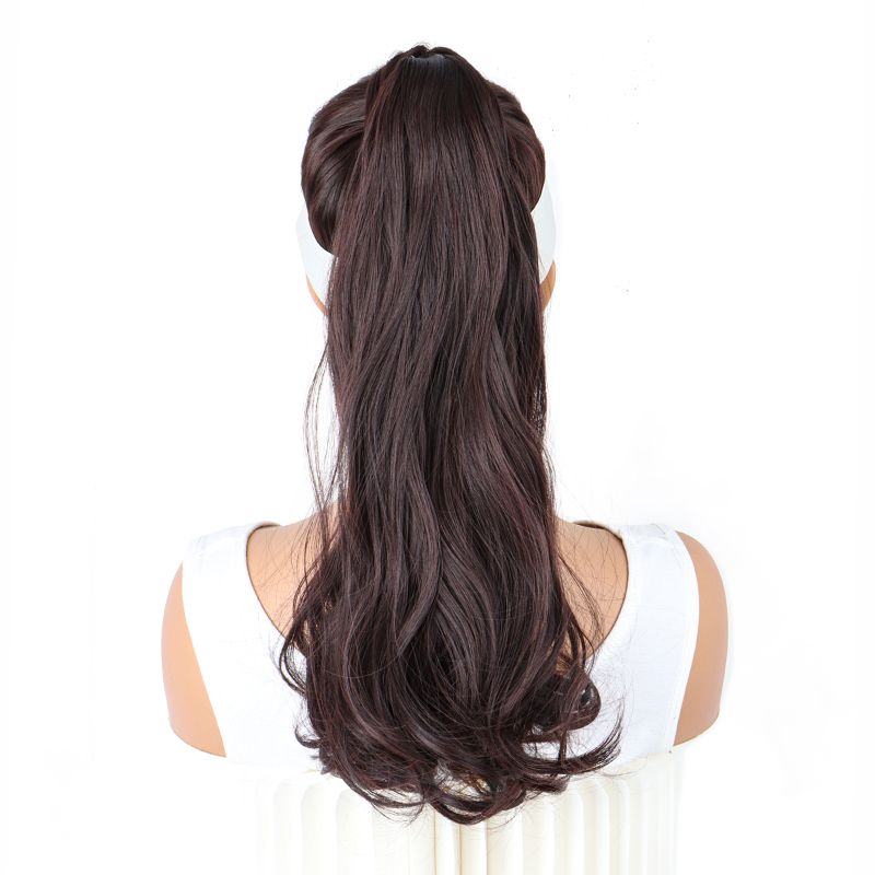 18Inch Synthetic Long Wavy Curly Ponytail Claw Clip in Hair Extension Black Brown Hairpiece Easy to Wear for Women