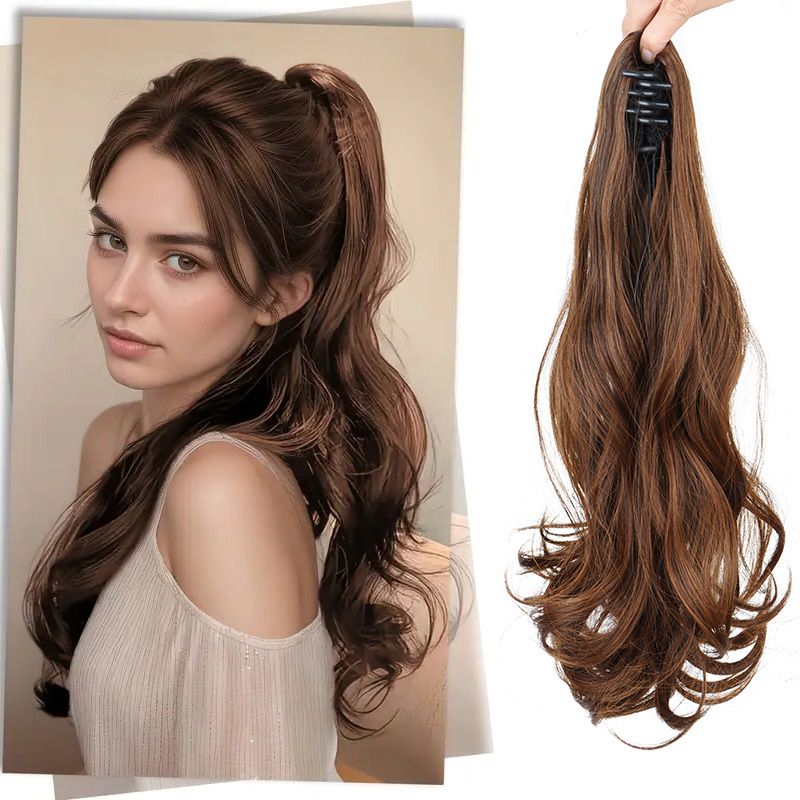 18Inch Synthetic Long Wavy Curly Ponytail Claw Clip in Hair Extension Black Brown Hairpiece Easy to Wear for Women
