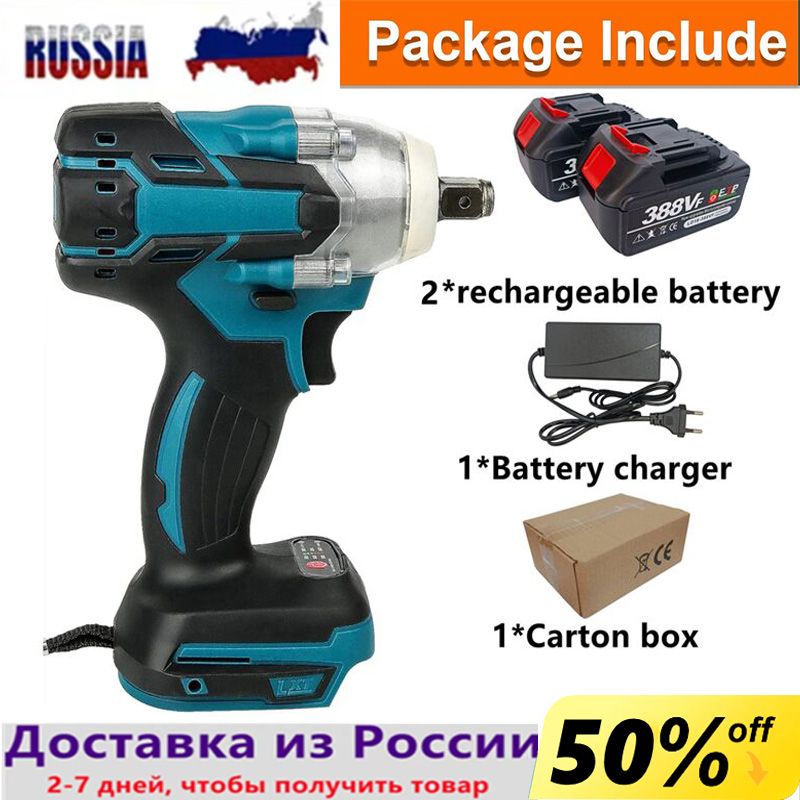 18V 2 In 1 Brushless Cordless Electric Impact Wrench 1/2Inch Power Tools 15000Amh Li Battery LED light Adapt To Makita Battery