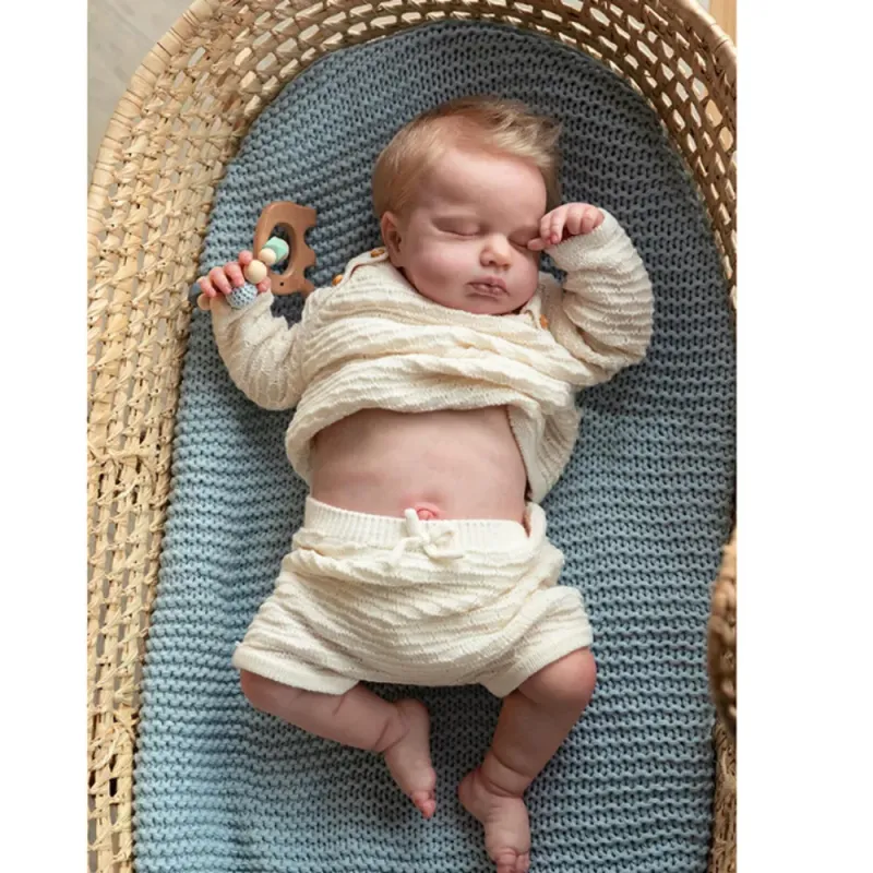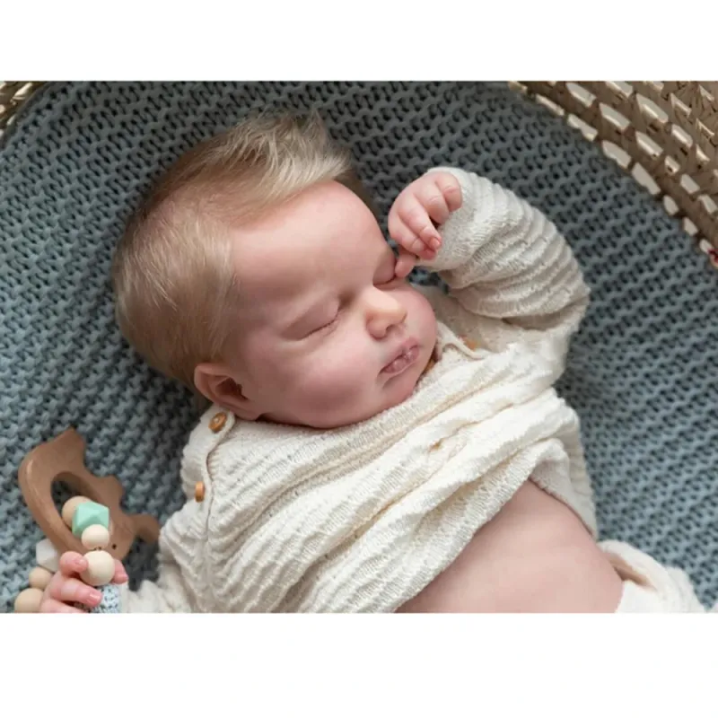 19inch Full Body Vinyl Reborn Doll Asleep Loulou with Rooted Blonde Hair Lifelike 3D Painted Skin Baby Visible Veins Bebé Reborn