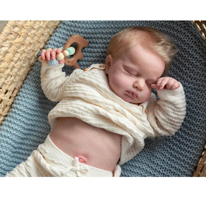 19inch Full Body Vinyl Reborn Doll Asleep Loulou with Rooted Blonde Hair Lifelike 3D Painted Skin Baby Visible Veins Bebé Reborn