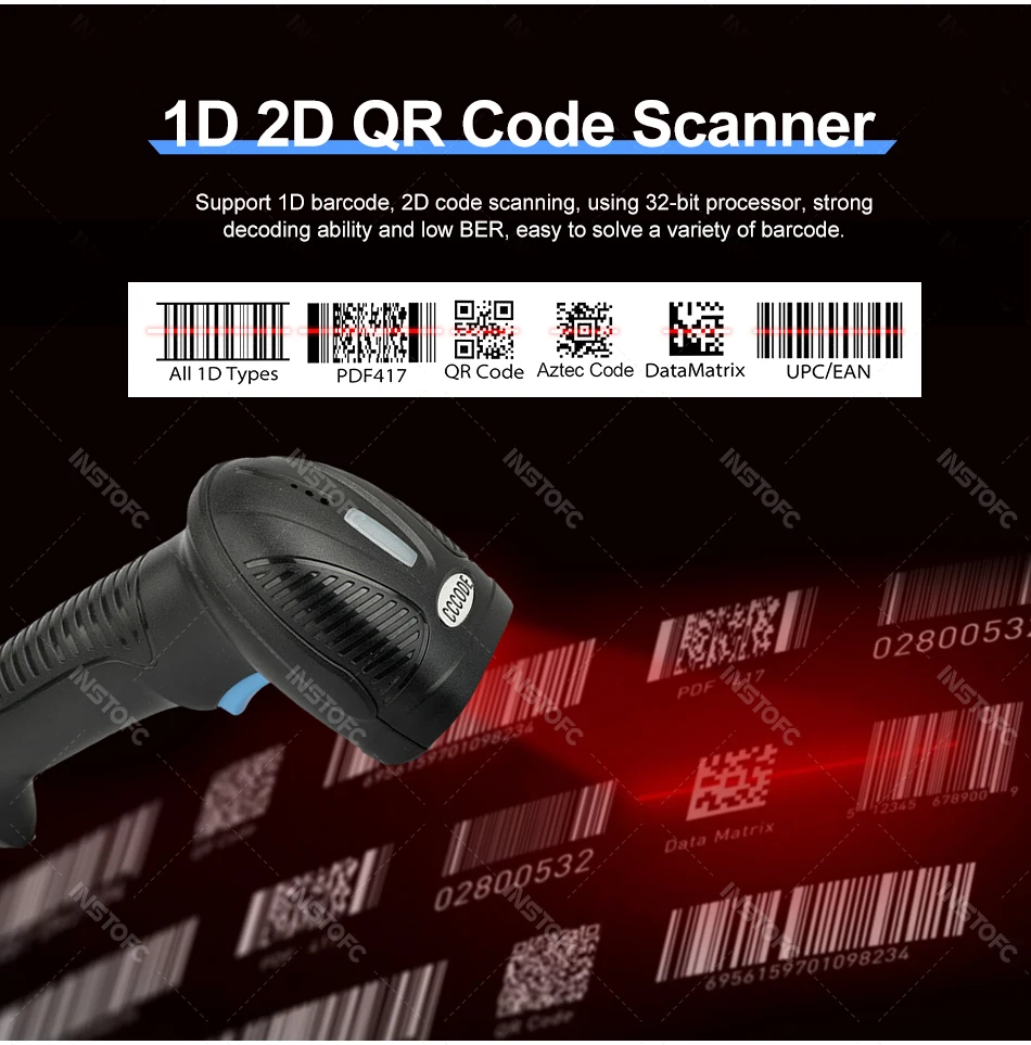 1D/2D Supermarket Barcode Reader Bluetooth USB Wireless Handheld Warehouse Bar Code QR Scanner CMOS Image High-speed Decoding