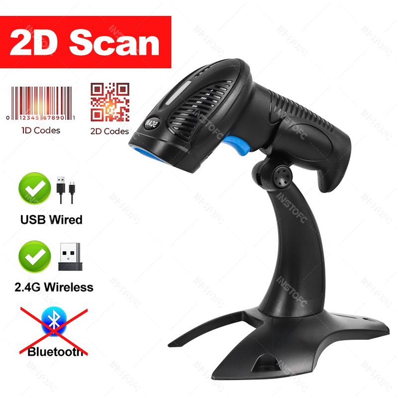 1D/2D USB/2.4G Wireless/Bluetooth Barcode Scanner. Multiple connection options are available; choose the connection method you need