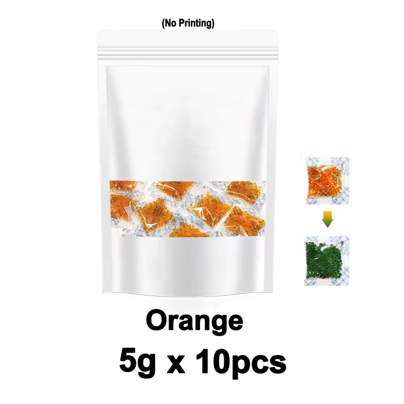 INDICATING DESICCAN & REUSABLE: Silica gel contains orange indicator beads, orange beads absorb moisture gradually saturated will become dark green, users can quickly tell when desiccant needs to be recharged or replace a new. In addition, they can be easily reactivated by heating in the microwave, oven, or exposure to sunlight (note: the temperature should not be too high and the time should not be too long, or the outer packaging may melt.)