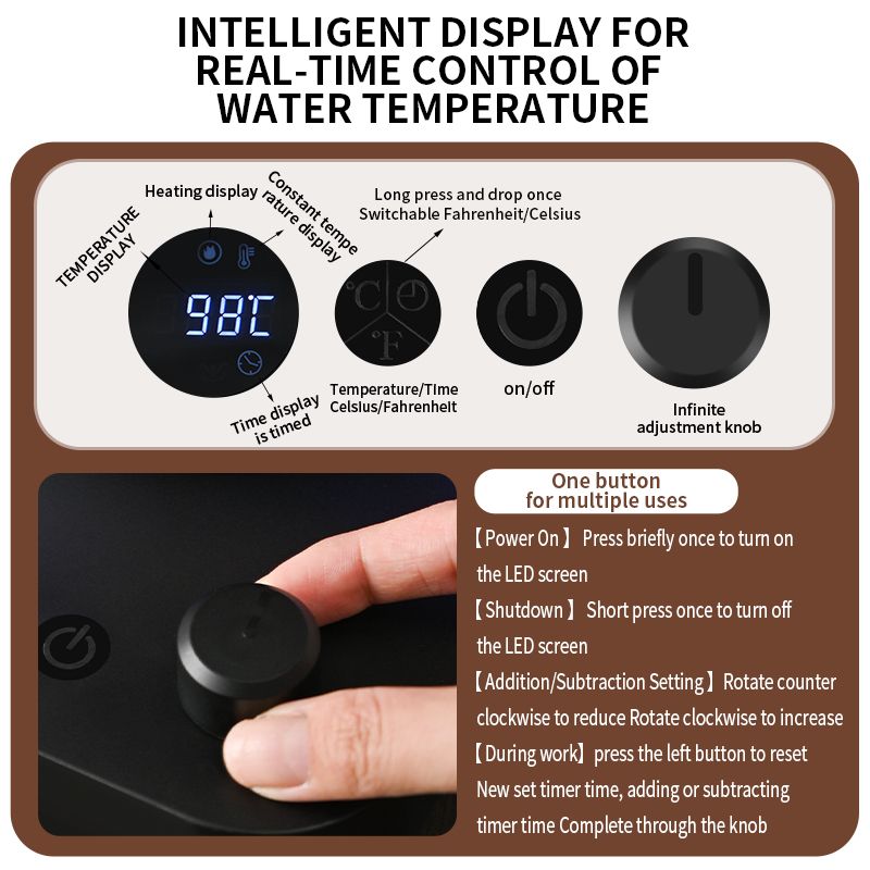 Set it and forget it! The LCD screen shows real-time/selected temps while the "Hold" function keeps water hot for up to 24 hours. Perfect for offices, slow mornings, or tea parties.
