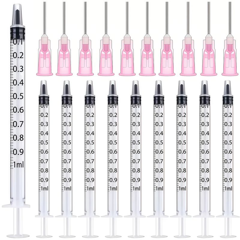 1ml plastic syringe with blunt pink needle, for animal feeding, liquid transfer, supplementation and scientific laboratory