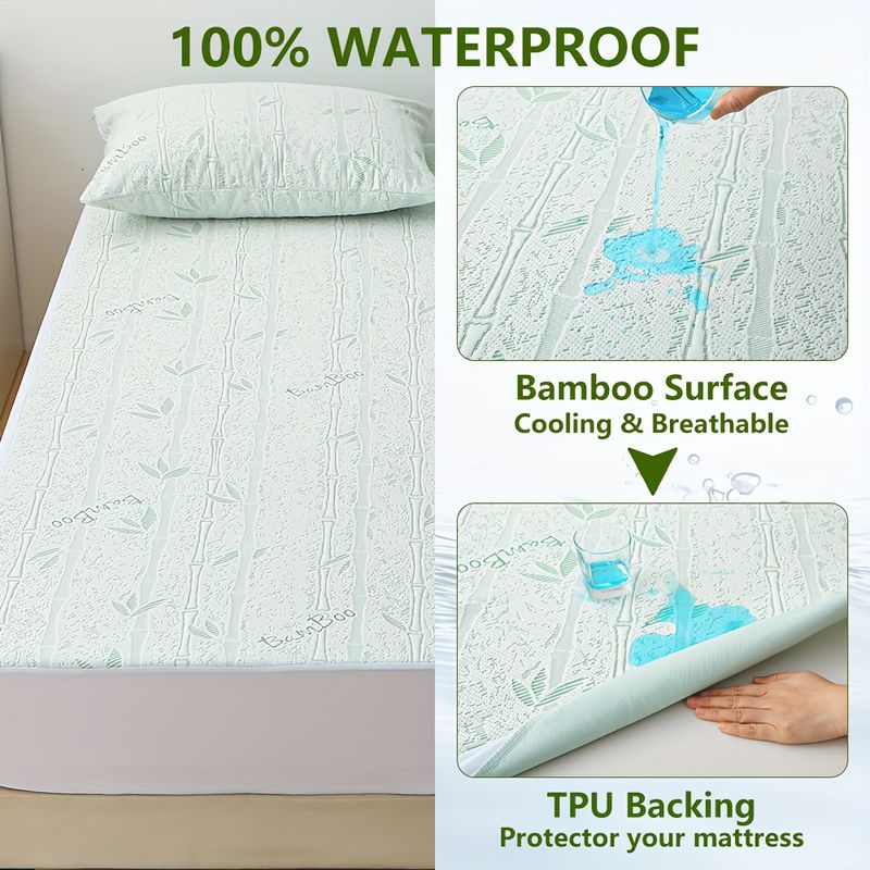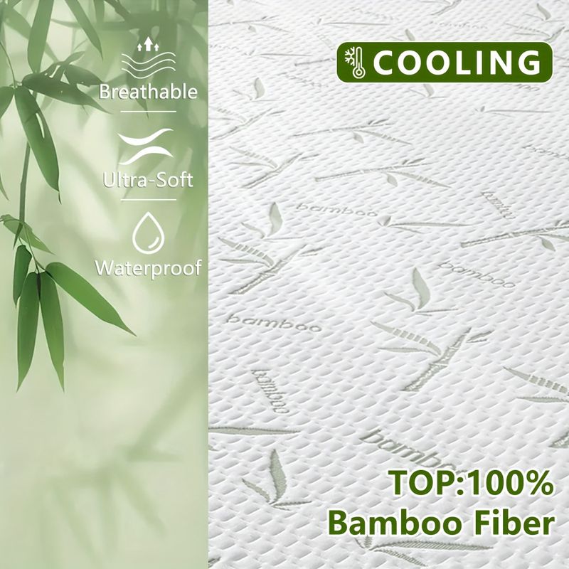 Experience the natural coolness of bamboo with our ultra-soft, breathable mattress protector. Designed for hot sleepers, its smooth, lightweight fabric gently regulates temperature for a soothing night’s sleep.
